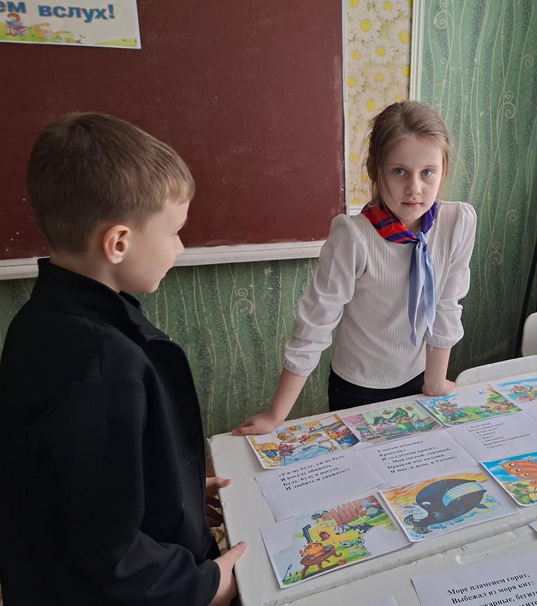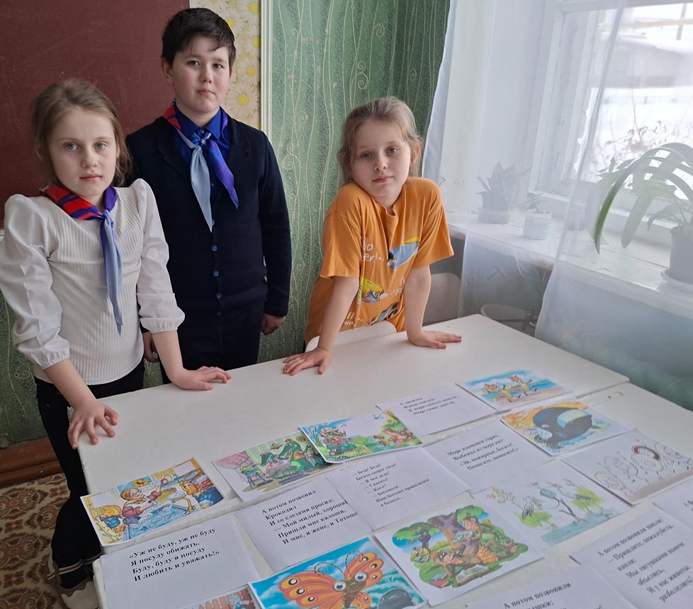 Затем детям было предложено принять участие в чтении вслух известных сказок Корнея Ивановича Чуковского: «Путаница», «Телефон» и «Федорино горе». Выбор этих произведений оказался символичным, поскольку именно в 2023 году исполнилось ровно сто лет с момента их первого опубликования.