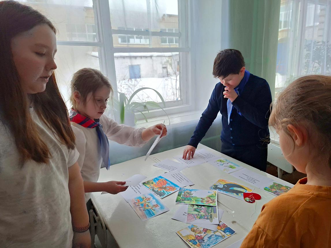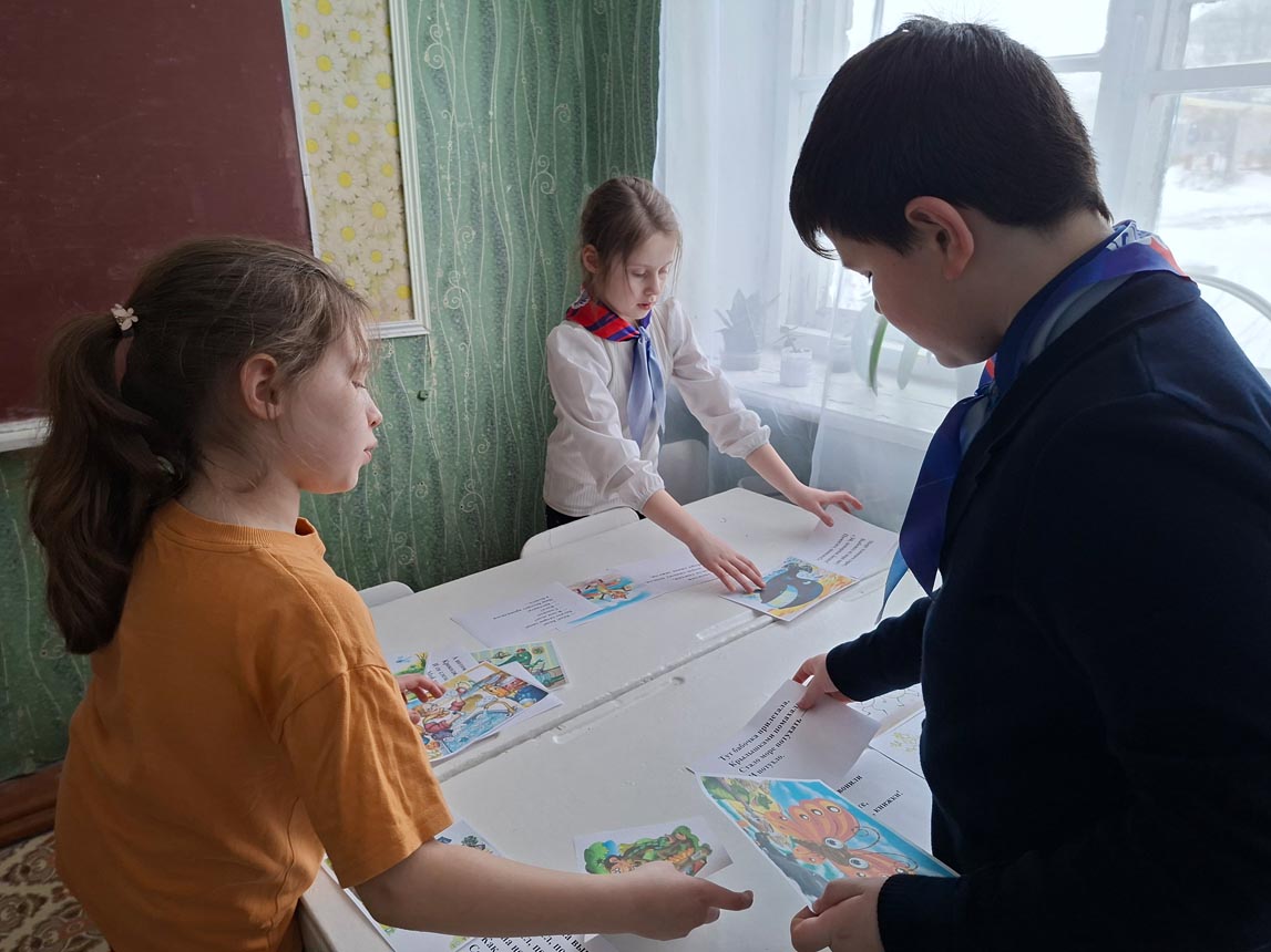 Кроме того, участники активно играли в тематические игры, угадывая недостающие слова и названия произведений, вспоминали сюжеты знакомых сказок по отрывкам и иллюстрациям.