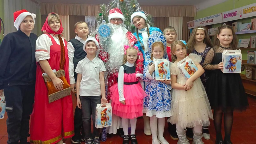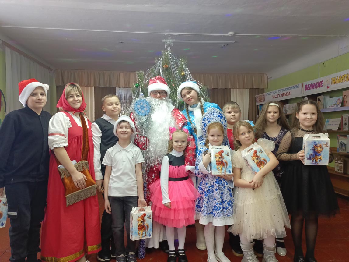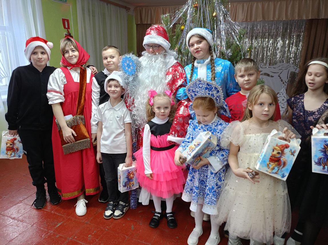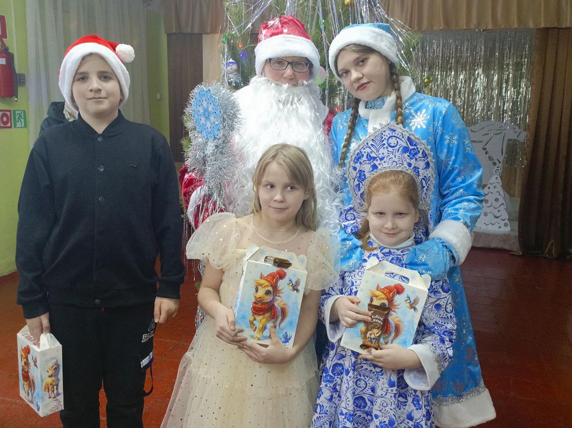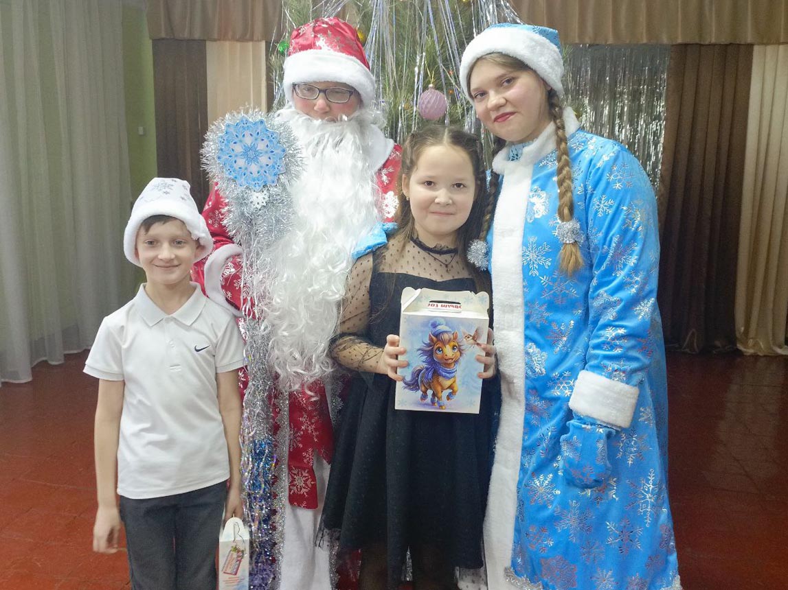 Каждый ребенок смог окунуться в новогоднюю сказку и получил от Деда Мороза и Снегурочки сладкие подарки.