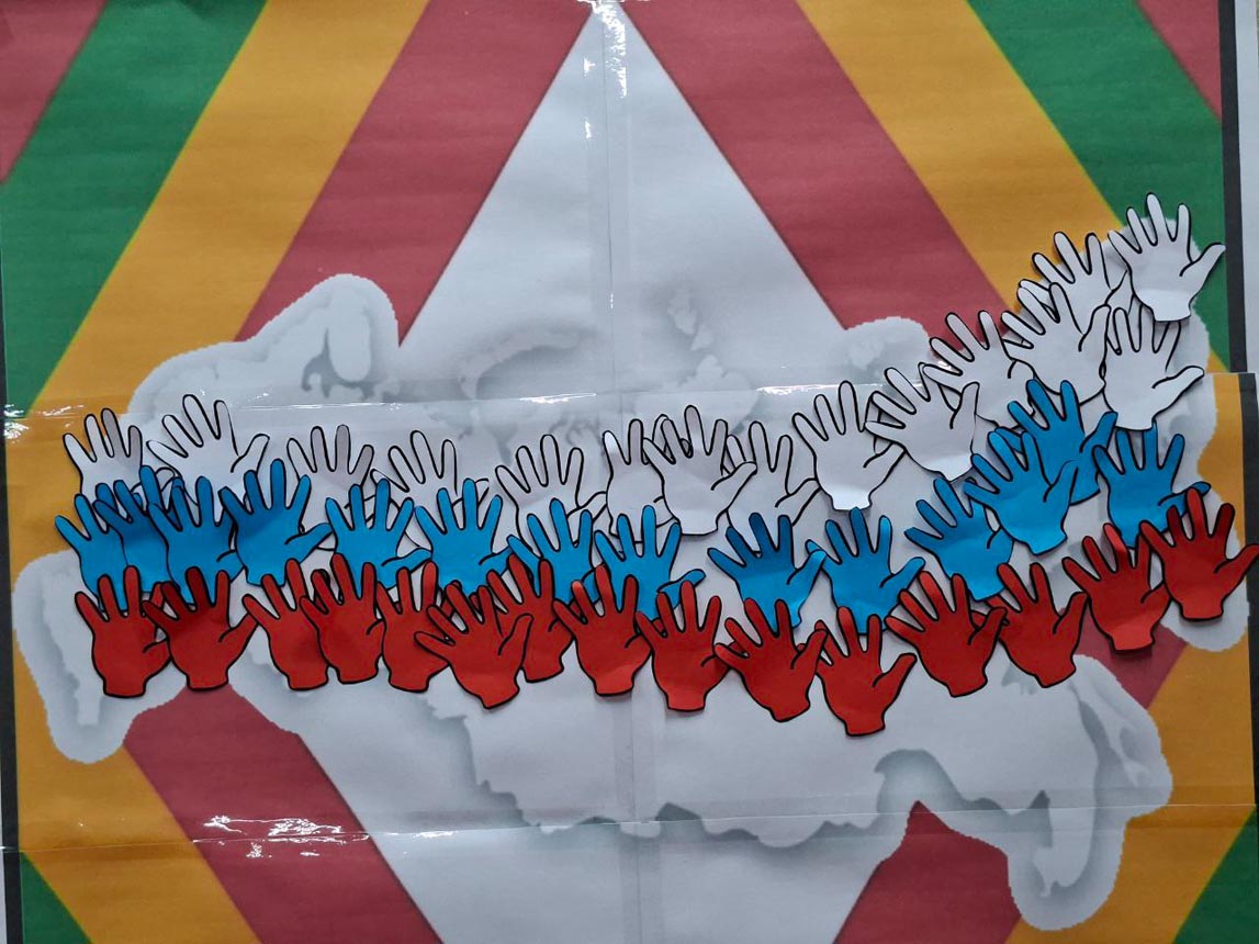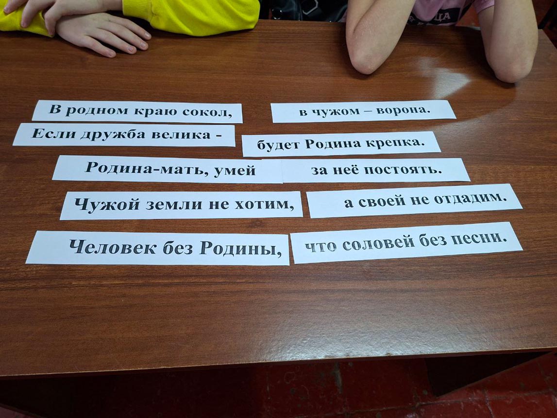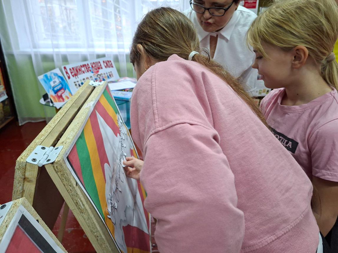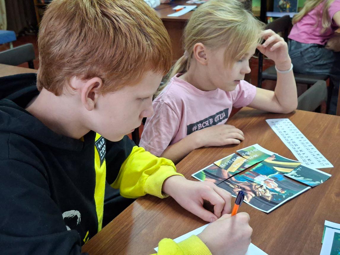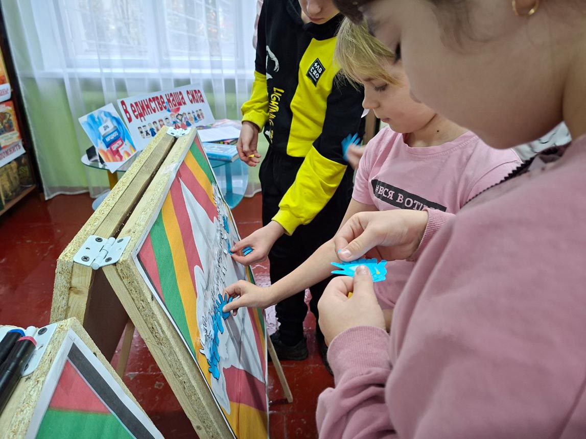 После небольшой разминки ребята приступили к увлекательным заданиям. Они раскрасили карту России в цвета триколора, отгадали ключевое слово «Единство», ответив на вопросы кроссворда. Также ребята собирали пазлы сказок народов России и расшифровывали их названия. А в завершение мероприятия проверили свою внимательность, ответив на вопросы итоговой викторины.