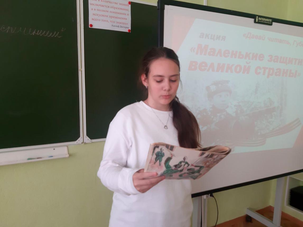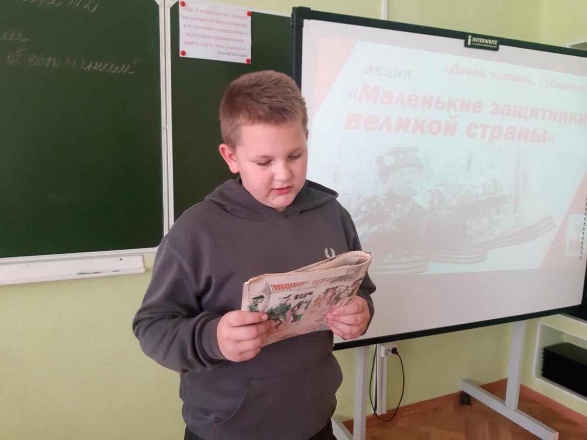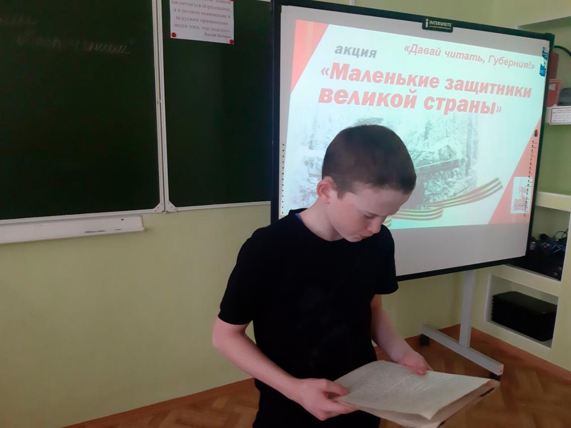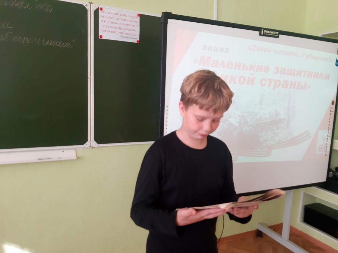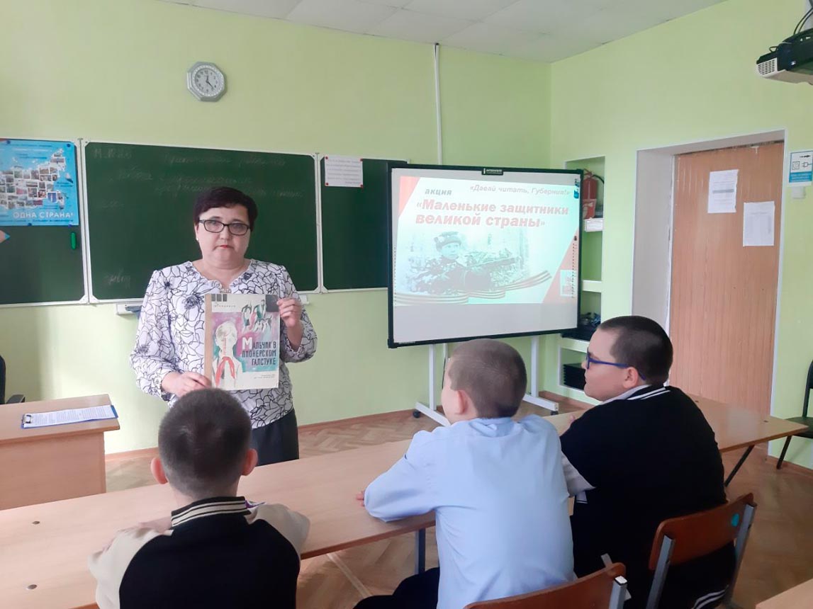 14 октября Детская библиотека им. А. С. Пушкина МУК «РМЦБ» присоединилась к Акции «Давай читать, Губерния!», посвященной 80-летию Победы в Великой Отечественной войне 1941-1945 годов, вкладу обыкновенных мальчишек и девчонок в Великую Победу. Организатор - Саратовская Областная библиотека для детей и юношества им. А. С. Пушкина. Сотрудники библиотеки провели для учащихся 6 класса МОУ «СОШ № 7 им. Героя Советского Союза Трынина А. С.» Региональный День чтения «Войной изломанные судьбы». Ребята узнали о судьбах детей в плену, на чужбине и в фашистских концлагерях. Для чтения выбрали книгу участника Великой Отечественной войны Георгия Константиновича Холопова — «Мальчик в пионерском галстуке». В ней рассказывается о подвиге и силе духа русского мальчика, оказавшегося в плену у немецкой фермерши.