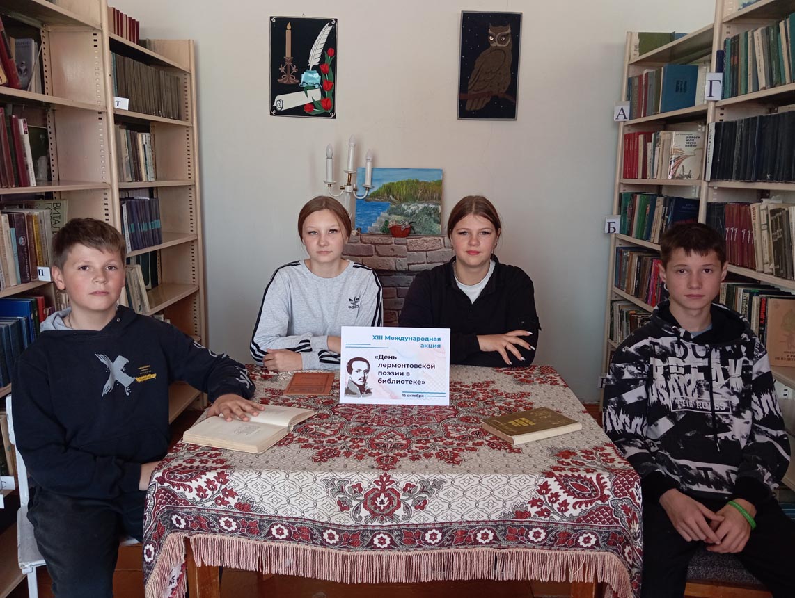 Талантливейшие произведения Михаила Юрьевича Лермонтова до сих пор ярко отражаются в живописи, театре, кинематографе, а стихи стали золотым фондом для оперного, симфонического и романсового творчества. В рамках XIII Международной акции «День лермонтовской поэзии в библиотеке», проводимой по инициативе Пензенской областной библиотеки для детей и юношества, во Владыкинской сельской библиотеке МУК «РМЦБ» прошёл литературный час «Бессмертная поэзия Лермонтова». Библиотекарь познакомила ребят с жизнью и творчеством великого русского поэта. Затем участники с большим удовольствием читали стихи. В исполнении ребят прозвучали самые известные его произведения, такие как «Парус», «Бородино», «Смерть поэта, «Кавказ».