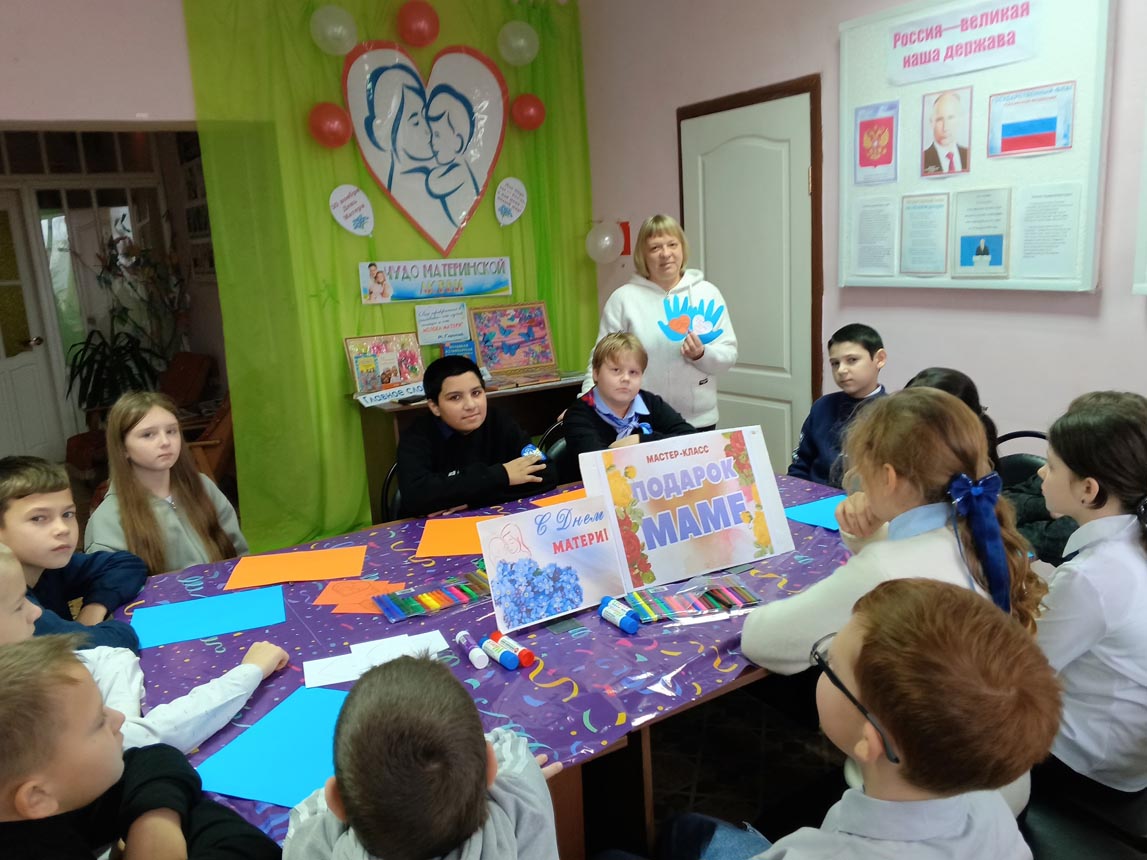 Библиотекарь рассказала детям о том, что в России День Матери отмечают в последнее воскресенье ноября, познакомила с историей праздника.