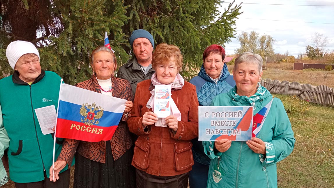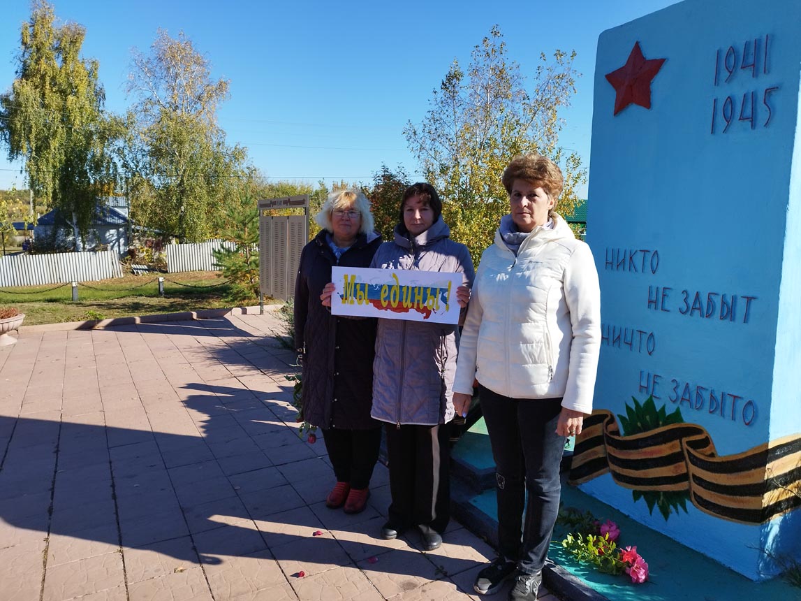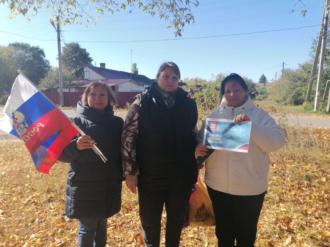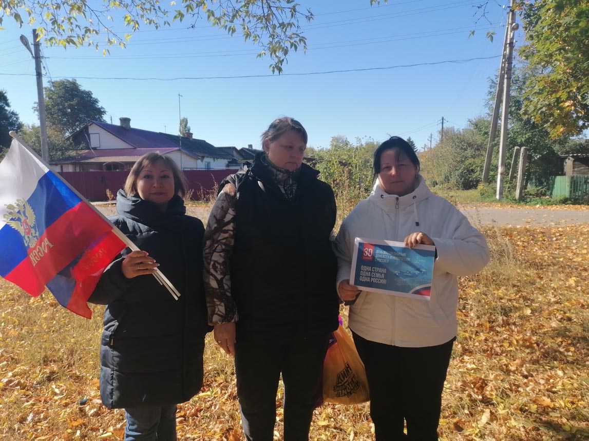 Библиотекарь Ульяновской сельской библиотеки совместно с работниками культуры провели уличную акцию «Сила единства России».