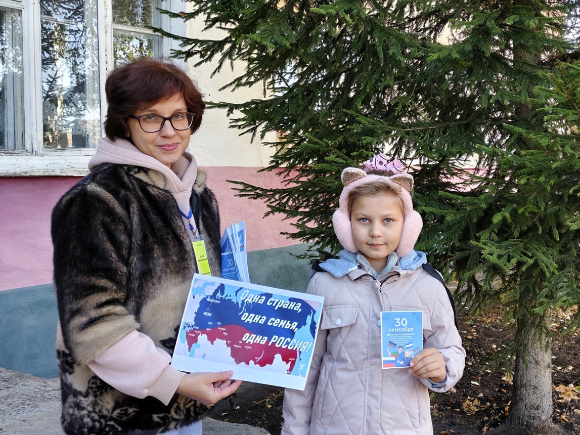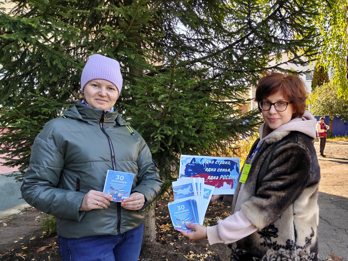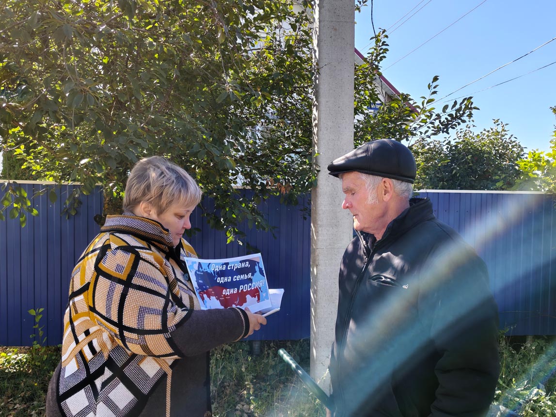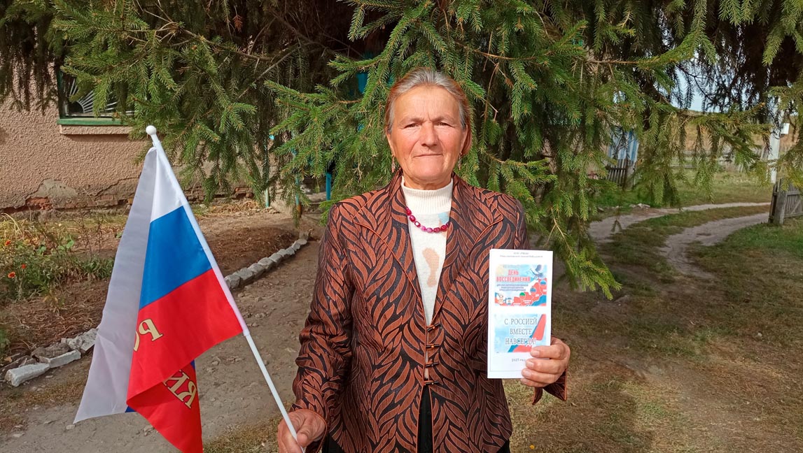 Библиотекарь Ульяновской сельской библиотеки совместно с работниками культуры провели уличную акцию «Сила единства России».
