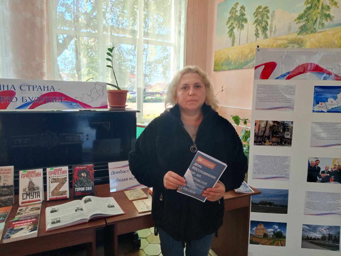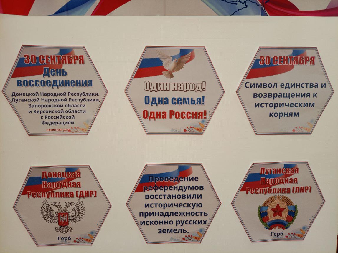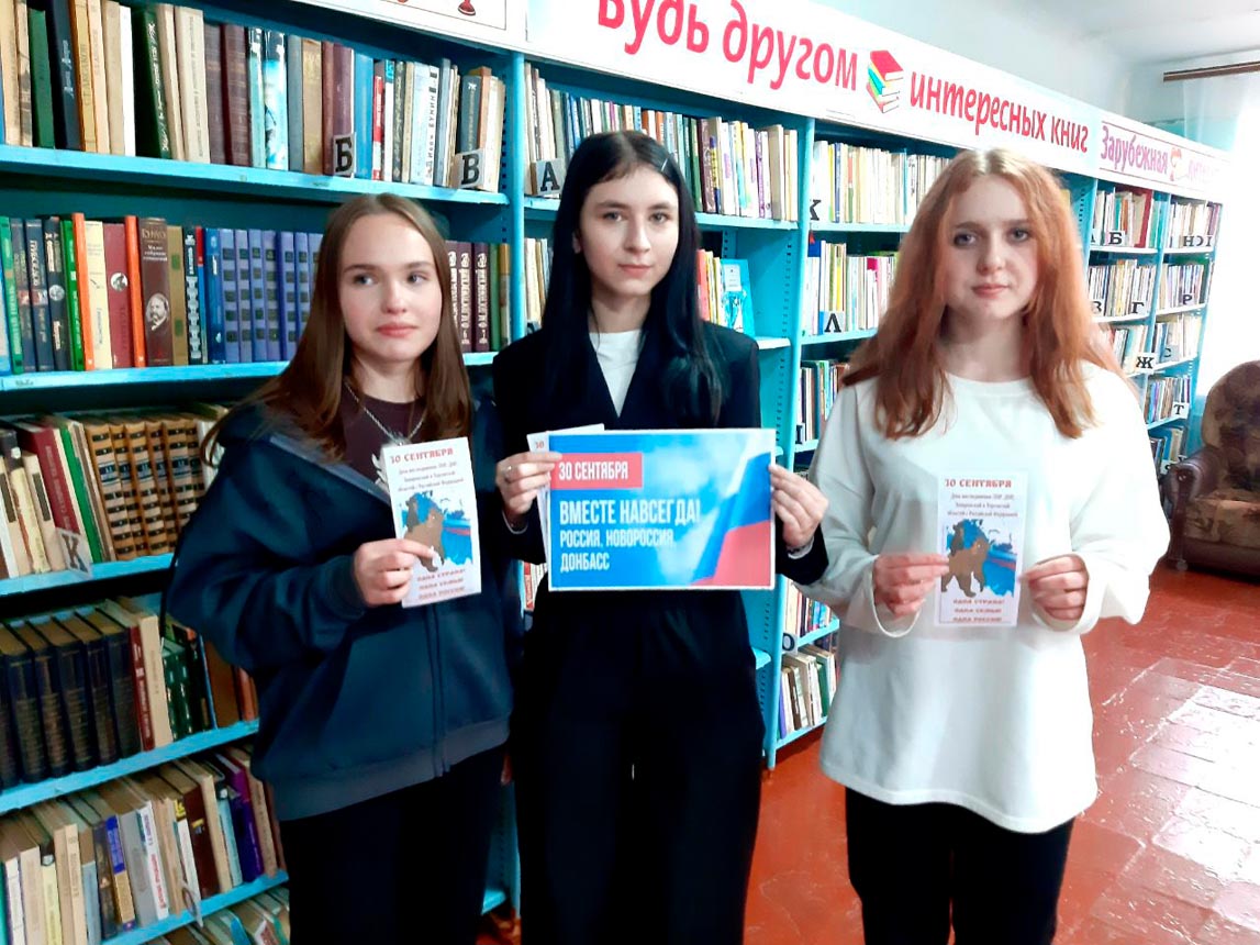 Центральная районная библиотека им. М. Горького МУК «РМЦБ» провела ряд мероприятий, посвященных Дню воссоединения Донецкой Народной Республики, Луганской Народной Республики, Запорожской области и Херсонской области с Российской Федерацией.