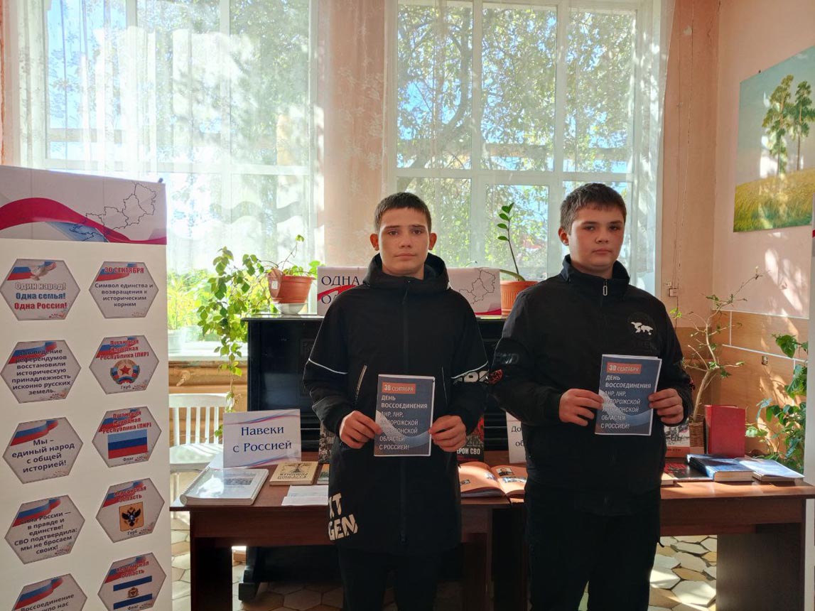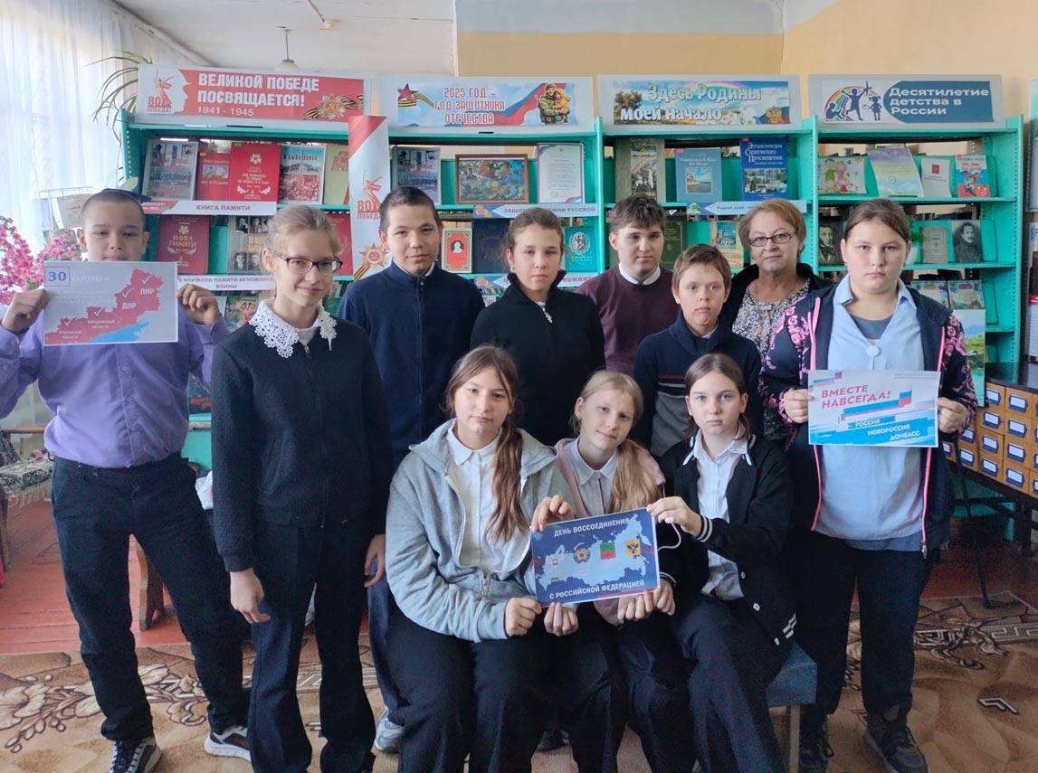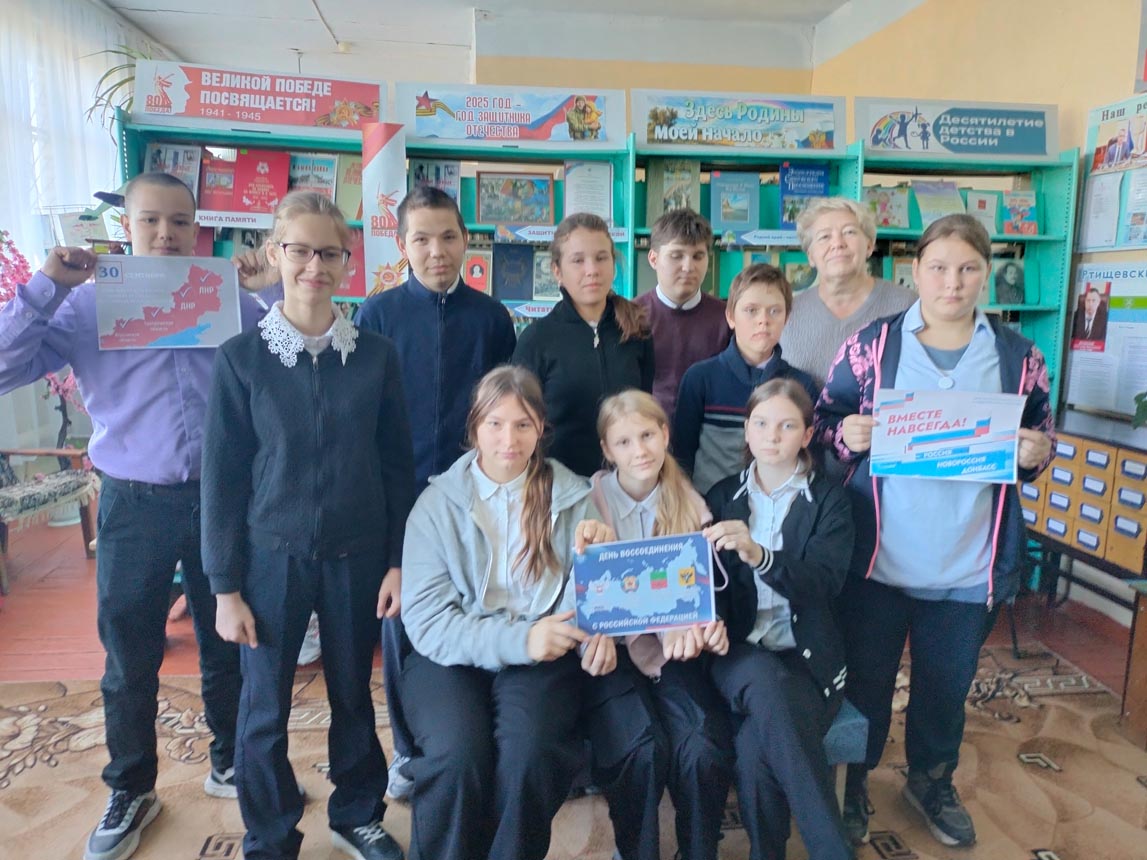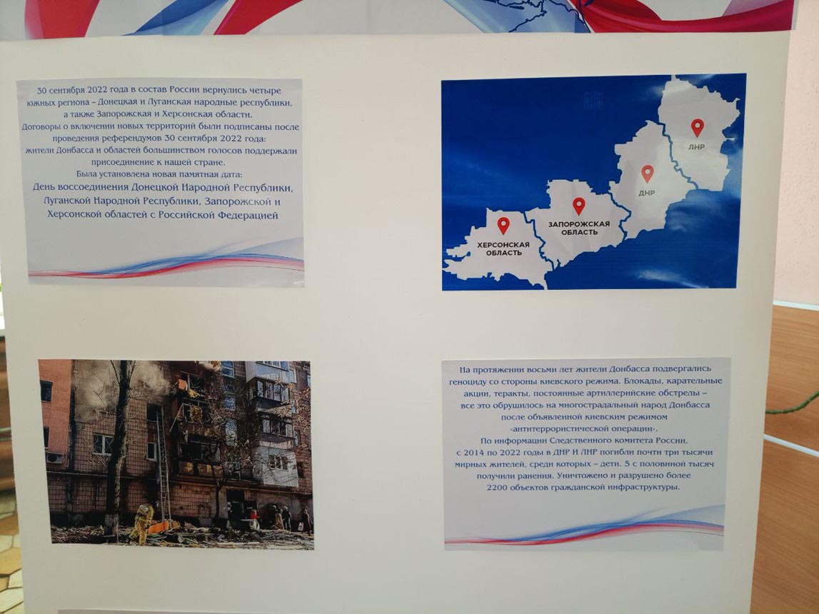 Центральная районная библиотека им. М. Горького МУК «РМЦБ» провела ряд мероприятий, посвященных Дню воссоединения Донецкой Народной Республики, Луганской Народной Республики, Запорожской области и Херсонской области с Российской Федерацией.