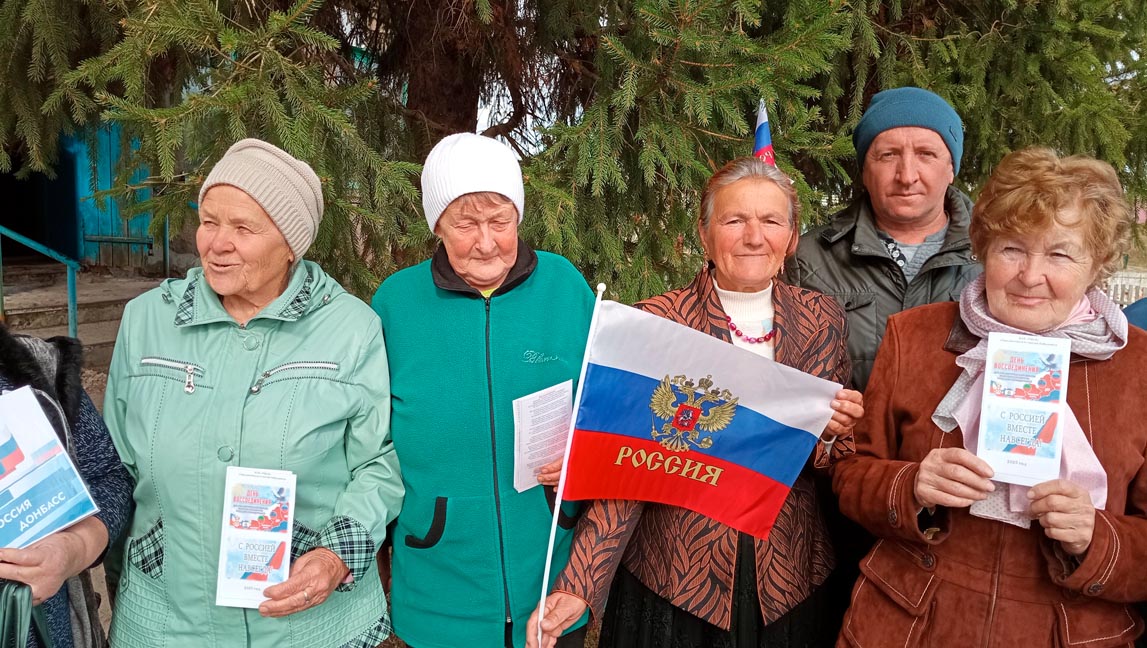 Сотрудники Темповской сельской библиотеки МУК «РМЦБ» и работники СДК провели патриотическую акцию «Россия, Новороссия, Донбасс. Вместе навсегда!».