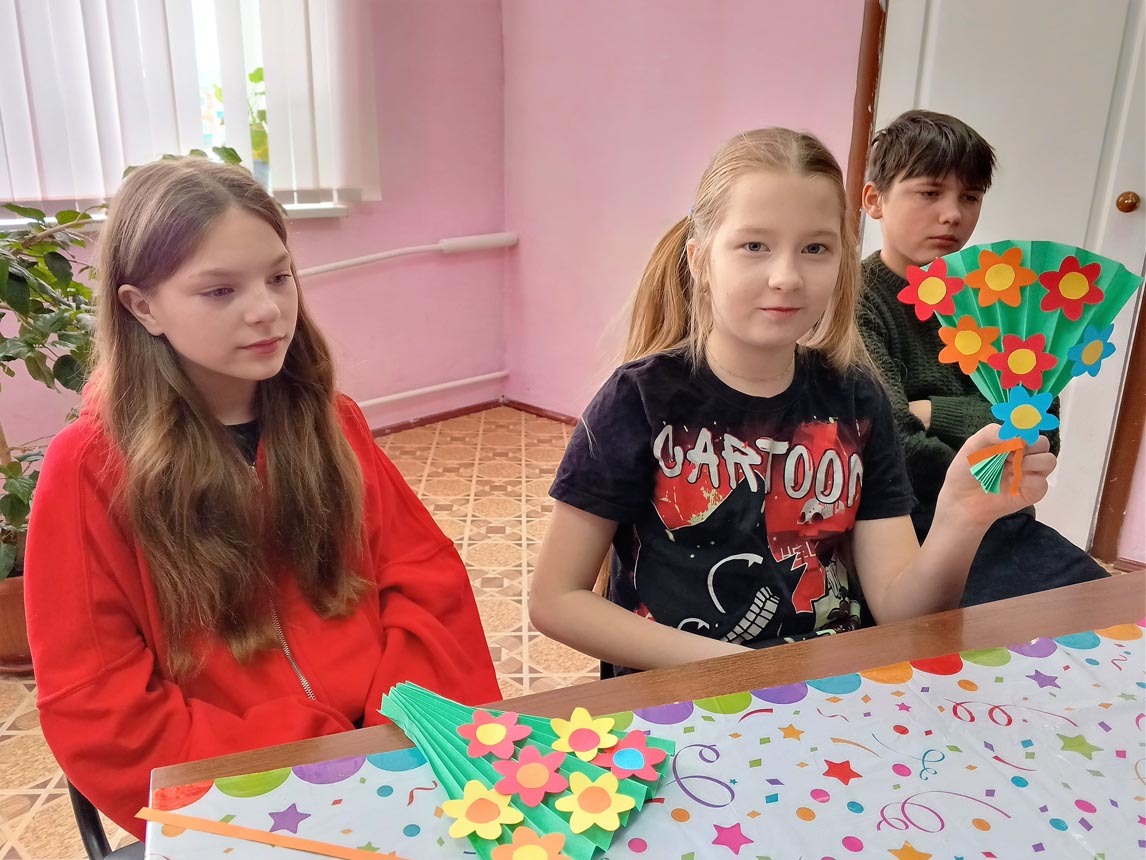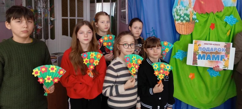 Приближается один из самых добрых, светлых праздников — Международный женский день 8 марта, который невозможно представить без красивых цветов, теплых поздравлений и милых подарков, в том числе и сделанных своими руками. В преддверии праздника в Шило-Голицынской сельской библиотеке МУК «РМЦБ» для детей младшего школьного возраста был проведен мастер - класс «Для любимой мамочки мастерим подарочки», где предложили юным участникам сделать из цветной бумаги яркий весенний букет.