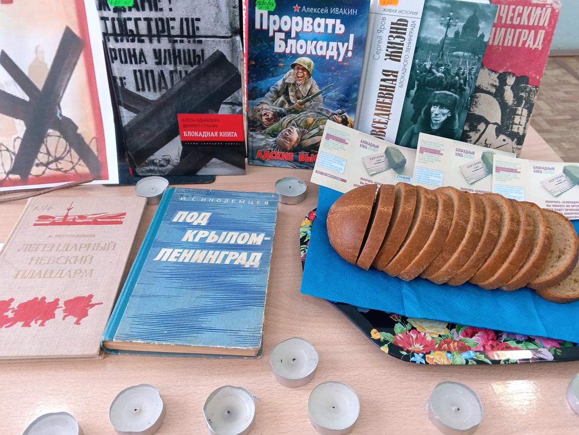 Кроме того, сотрудниками библиотеки подготовлена тематическая книжная выставка «Непокорённый Ленинград», представляющая литературу, раскрывающую подробности блокадных дней. Читатели знакомятся с историей города, именами известных защитников и простых жителей, чьё поведение вошло в анналы истории.