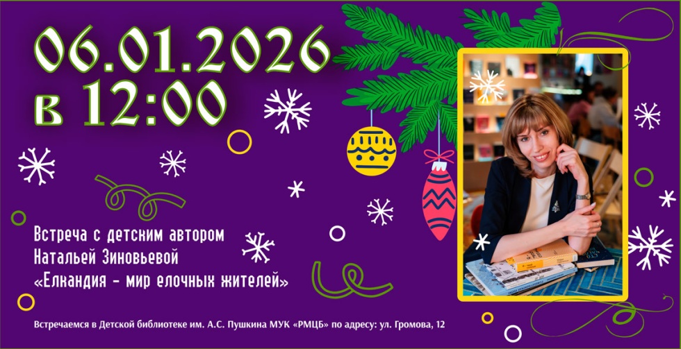 Детская библиотека им. А.С. Пушкина МУК «РМЦБ» приглашает на встречу с детским автором Натальей Зиновьевой - «Елкандия – мир елочных жителей»