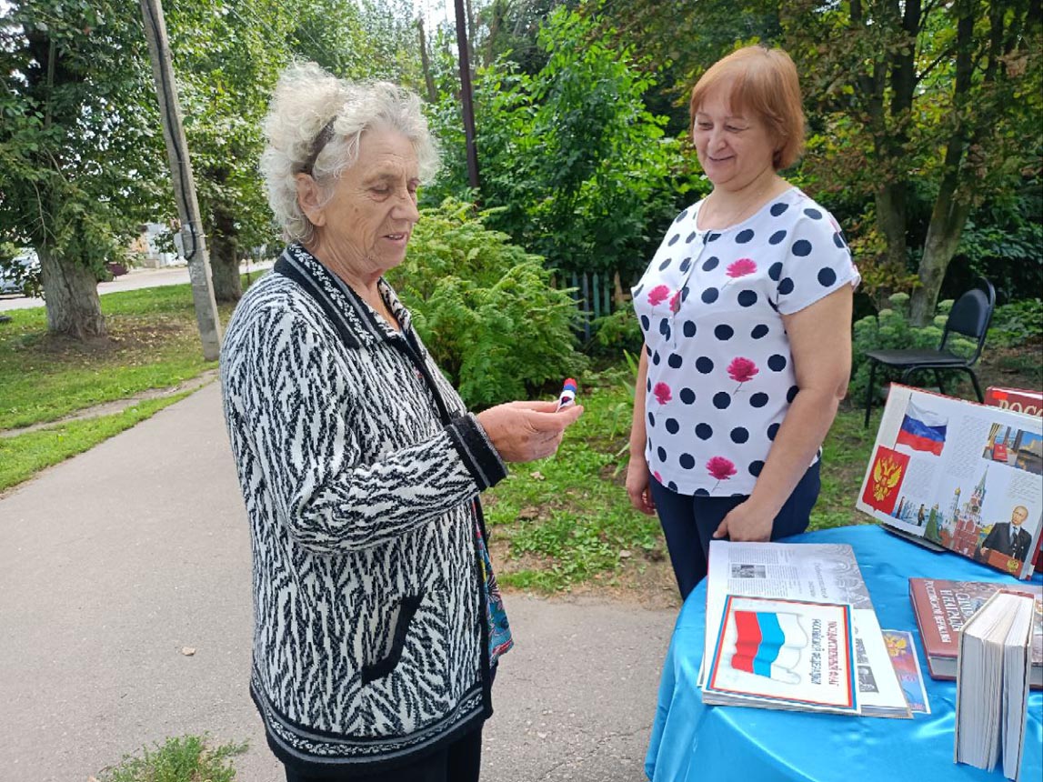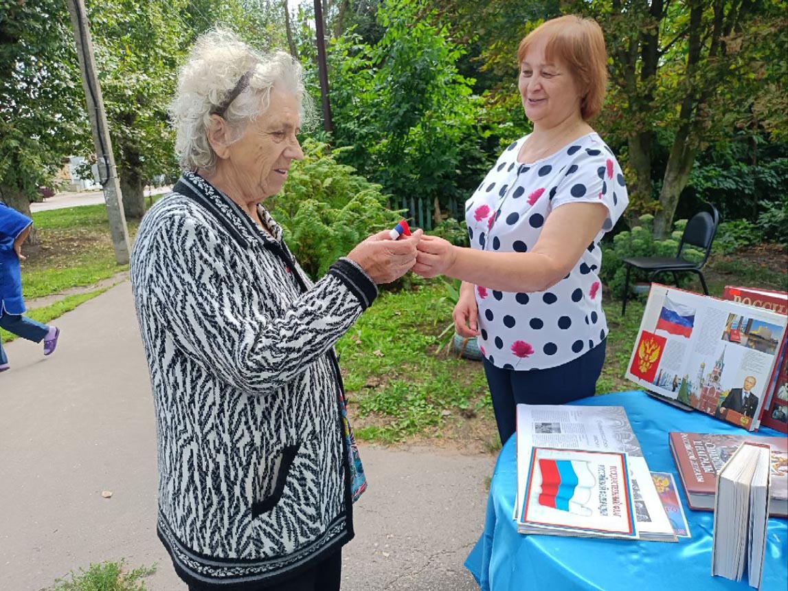 К дню Государственного флага работники Центральной районной библиотеки МУК «РМЦБ» оформили интерактивную площадку «Флаг державы – символ славы». 22 августа отмечается один из самых важных и значимых праздников в нашей стране – день Государственного флага Российской Федерации. День Российского флага – это праздник всех поколений россиян, дань уважения истории великой страны. Флаг – один из главных символов государства, который объединяет граждан, связывает воедино прошлое, настоящее и будущее страны. Под российским флагом вершились значимые события в истории России. И сегодня мы продолжаем добиваться успехов в экономике, науке и спорте, защищаем целостность и суверенитет нашей страны. Под Государственным флагом России живут и трудятся миллионы людей разных национальностей и вероисповеданий, профессий и жизненных взглядов. Но всех объединяет любовь к Родине, желание сделать её ещё более сильной и могущественной. Накануне праздника в Центральной районной библиотеке была оформлена интерактивная площадка «Флаг державы – символ славы». На ней была представлена информационная выставка «Один флаг – одна страна», артзона оформленная в цветах российского флага. В ходе мероприятия жители города знакомились с историей государственного флага и интересных фактах о нём. С большим удовольствием участники фотографировались на фоне артзоны. Библиотекари поздравили с днем Российского флага жителей города и вручили им символы праздника.