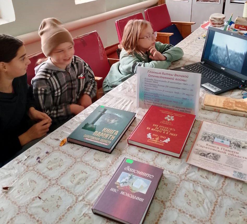 Патриотизм – это любовь к Родине, преданность своему Отечеству, стремление служить его интересам и готовность, вплоть до самопожертвования, к его защите. Библиотекарь Ульяновской сельской библиотеки МУК «РМЦБ» провела патриотический час «Герои России моей». Дети познакомились с историческими событиями всех войн, которые черными буквами вписаны в нашу историю России. Библиотекарь рассказала, что Россия – многострадальная земля, как много бед выпадало на ее долю, много слез пролито ее матерями. Как важно отдавать дань уважения ныне живущим и чтить память погибших – в первую очередь для молодого подрастающего поколения. Вниманию участников был представлен показ документального фильма о новых героях России «Герои операции Z». Ребята узнали истории о солдатах и офицерах вооруженных сил, России, которые в ходе спецоперации на Украине проявляют мужество и героизм, не сдаются и не падают духом, кто готов отдать свою жизнь ради победы над нацизмом.
