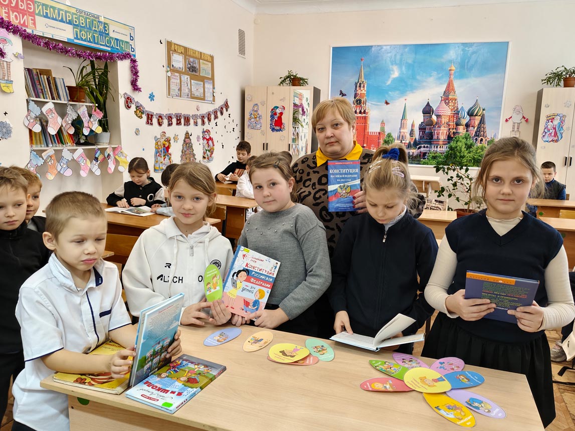 12 декабря городская библиотека №3 МУК «РМЦБ» провела правовой час «Главный закон страны» для младших школьников СОШ №7. Участники мероприятия познакомились с основными правами и обязанностями граждан, гарантированными Конституцией РФ.