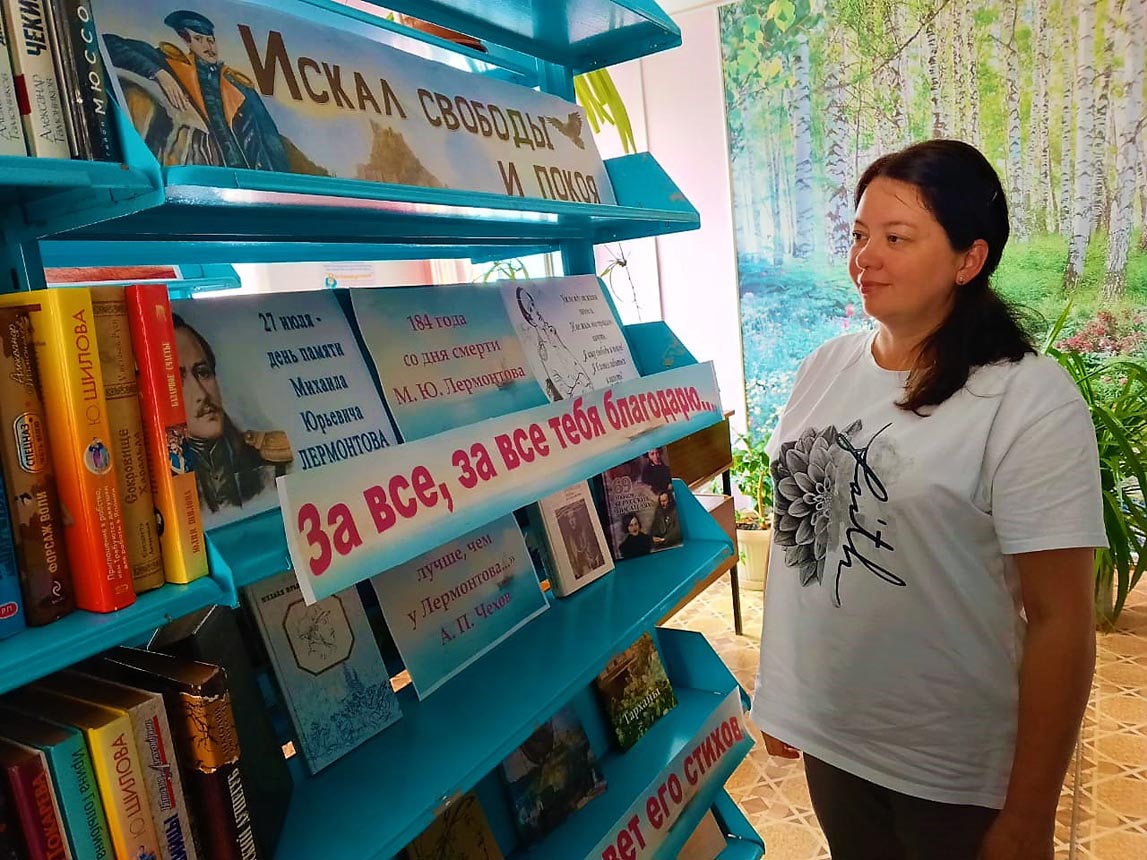 К 184-летию со дня смерти М.Ю. Лермонтова в Шило-Голицынской сельской библиотеке оформлена книжно-иллюстративная выставка «Искал свободы и покоя»