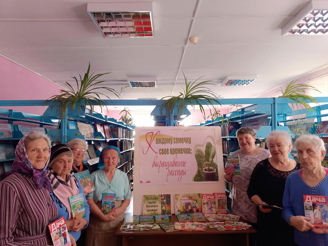 В завершение встречи гости вспоминали пословицы о земледелии, познакомились с народными приметами весны и посетили выставку-рекомендацию «Каждому семечку своё времечко». На полках были представлены книги и журналы, в которых можно найти ответы на самые разные вопросы: от ухода за плодовыми деревьями до выращивания красивых цветов для клумбы.