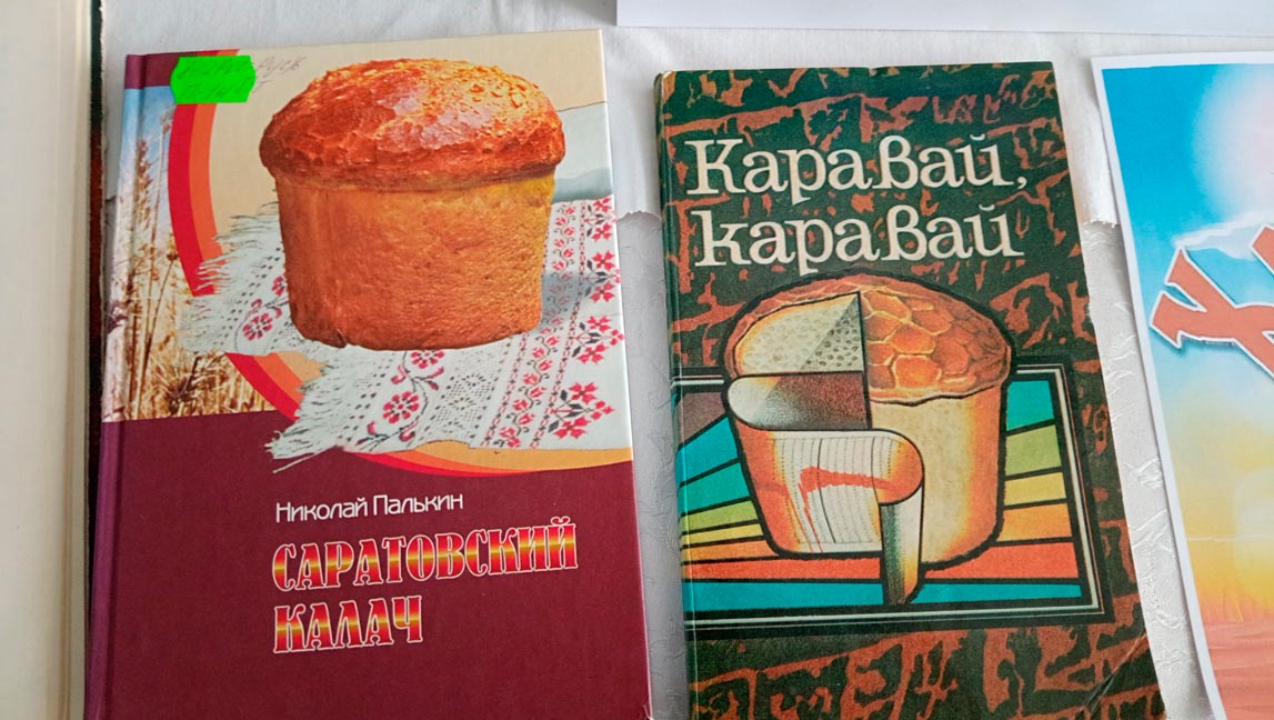 Особое место на выставке занимает книга нашего земляка, поэта Николая Егоровича Палькина «Саратовский калач», со страниц которой читатель узнает о том, кто его изобрел, чем он необычен, как его выпекают.