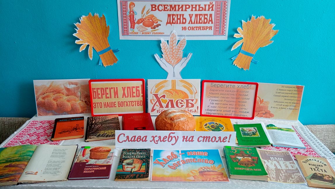 16 октября отмечается Всемирный день хлеба. Именно в этот день в 1945 году была создана Продовольственная и сельскохозяйственная организация ООН. Хлеб - символ жизни, здоровья и благополучия человека. Хлеб - один из самых древних и удивительных продуктов природы и человеческого труда. На Руси хлеб почитался как святыня. С хлебом провожали на фронт. С хлебом встречали вернувшихся с войны. Хлебом поминали тех, кто уже не вернется. У каждого свой хлеб. Каждый по - своему воспринимает и ценит его. Но есть для всех без исключения одно общее: хлеб — это жизнь. В произведениях русской литературы хлеб занимает особое место, так как он считается одним из главных богатств нашей страны и, несомненно, главным элементом культуры русского народа. Для широкого круга читателей в Потьминской сельской библиотеке МУК «РМЦБ» оформлена книжная выставка «Хлеб - всему голова». Проведен обзор литературы.