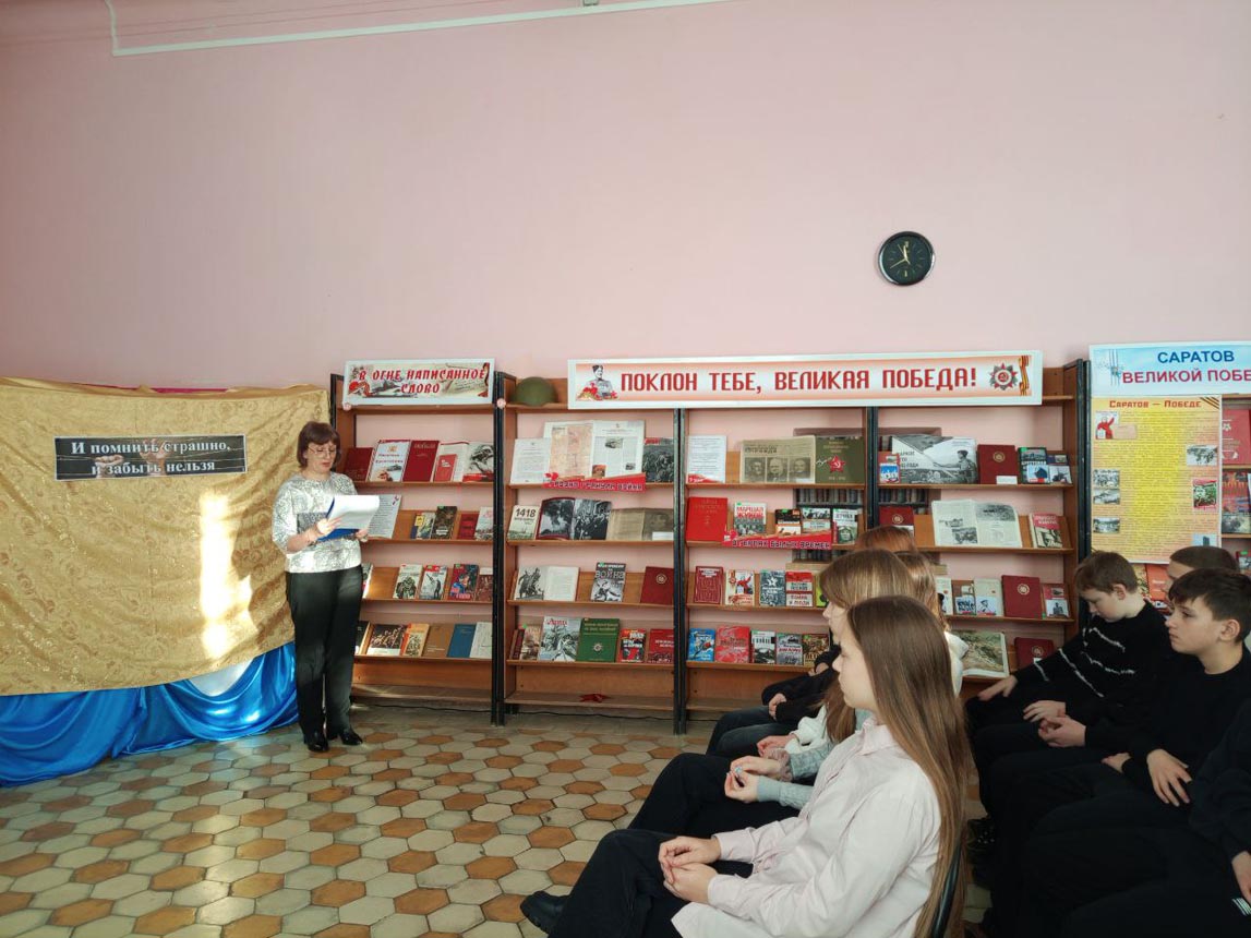 27 января в Центральной районной библиотеке состоялся час памяти «Холокост: память без срока давности», посвященный Международному дню памяти жертв Холокоста. Участниками мероприятия стали учащиеся ГАОУ СО Лицея № 3 имени П.А. Столыпина.
