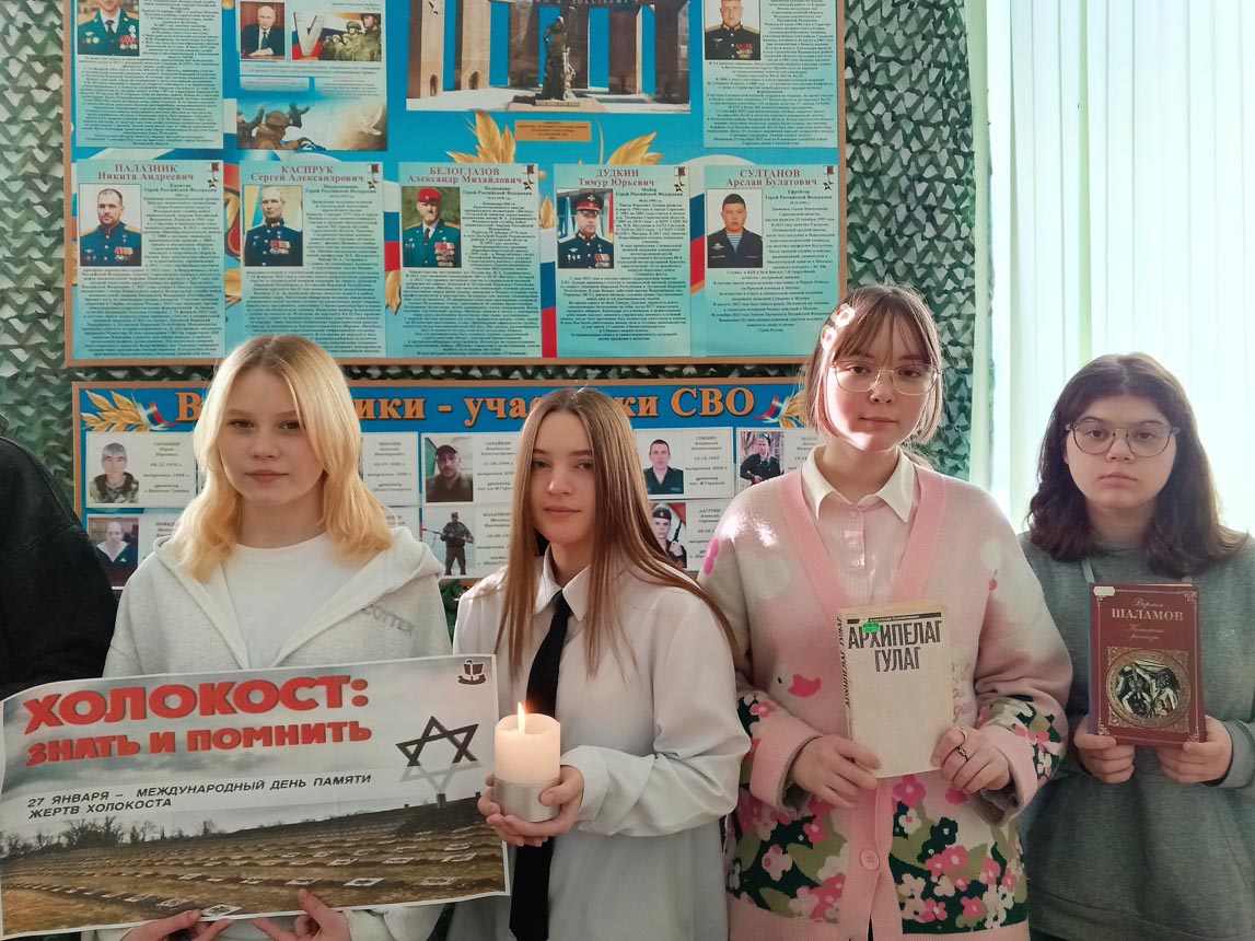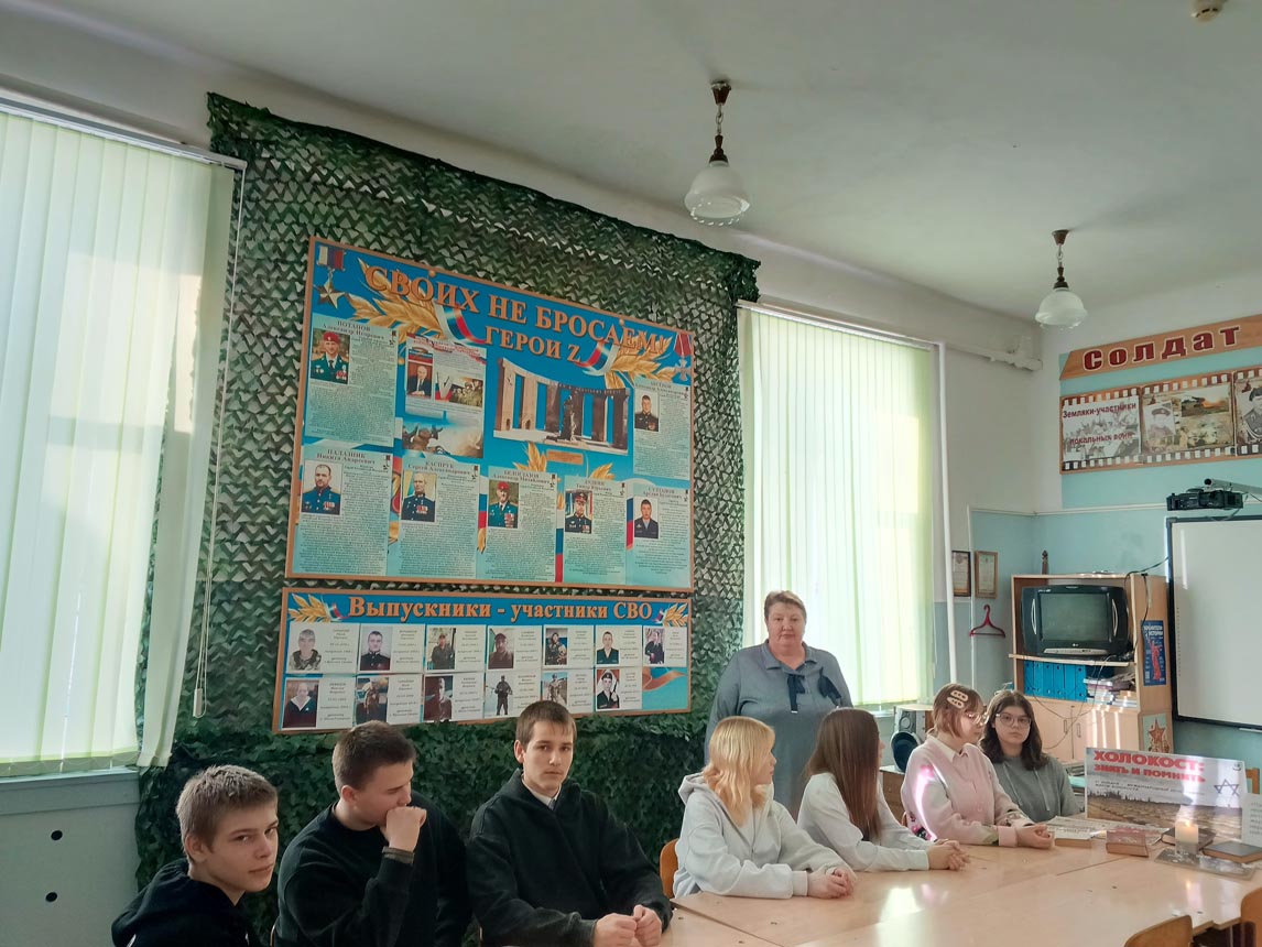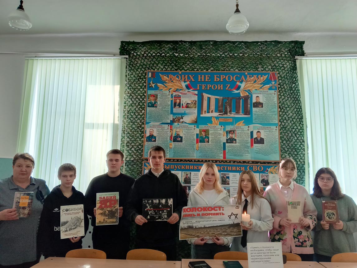 В рамках часа памяти «Холокост – преступление и наказание», организованного 27 января Шило-Голицынской сельской библиотекой МУК «РМЦБ» для учеников старших классов, прозвучало много важной исторической информации. Библиотекари раскрыли суть самого термина «холокост», ознакомили присутствующих с масштабами преступлений нацистов и представили исторический экскурс в зарождение и развитие гитлеровского режима, этапы формирования антигуманистической идеологии и кровавые последствия её воплощения.
