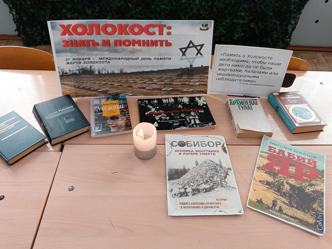 Завершая встречу, школьники смогли ознакомиться с выставкой художественной и документальной литературы, представленной на книжной выставке «Холокост: знать и помнить». Участниками единогласно сделан важный вывод: трагедия Холокоста должна служить уроком всему человечеству, предупреждая о недопустимости ненависти, нетерпимости и радикального национализма. Ведь подобное зло способно поразить любую страну и народ. Только знание правдивой истории позволяет предотвратить возвращение ужасов минувшего столетия и воспитать общество, основанное на принципах взаимного уважения и достоинства.
