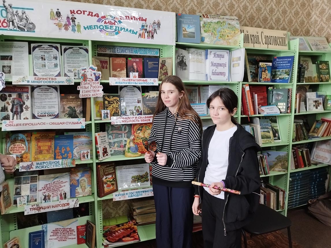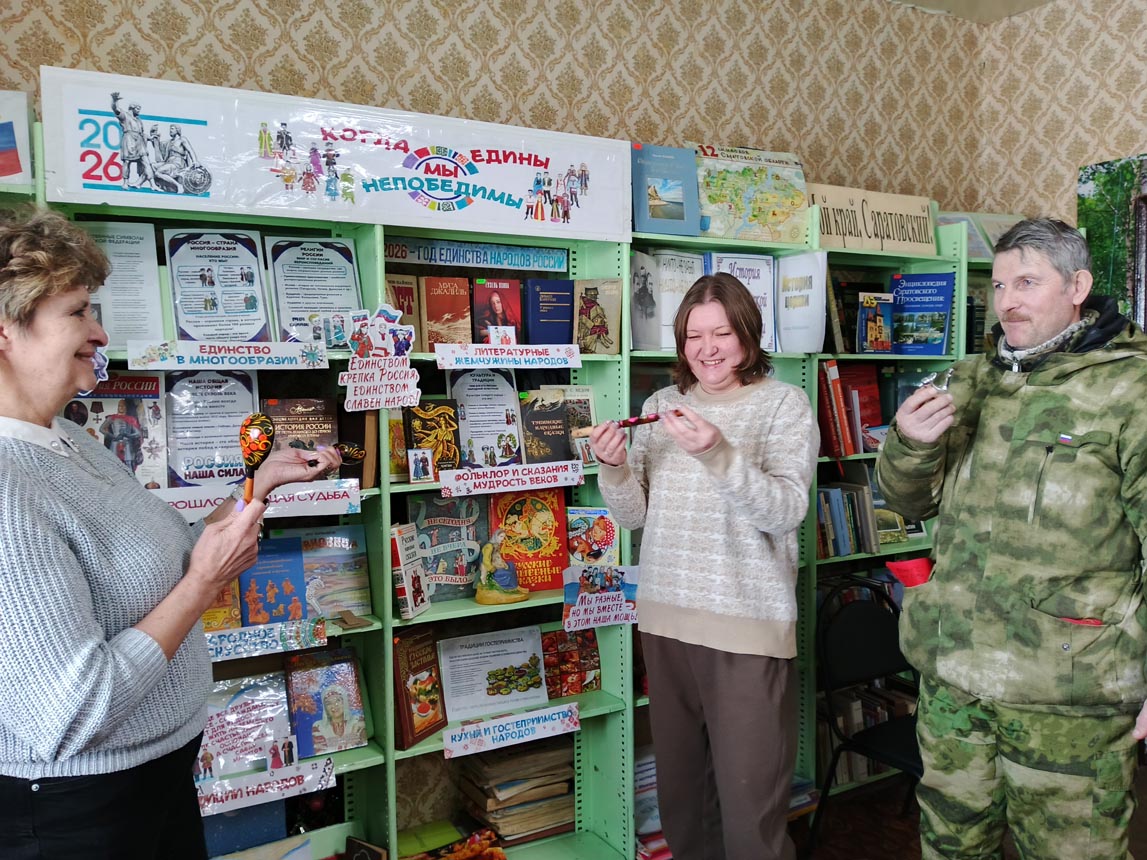 В Год единства народов России сотрудники Макаровской сельской библиотеки организовали тематический обзор книжной выставки «Когда мы едины, мы непобедимы». Библиотекарь начала мероприятие рассказом о величии нашей родины: Россия — самая крупная страна мира, простирающаяся от берегов Балтийского моря до Тихого океана. Ее территория охватывает разнообразные природные зоны — от ледяных просторов Арктики до жарких субтропиков Кавказа.
