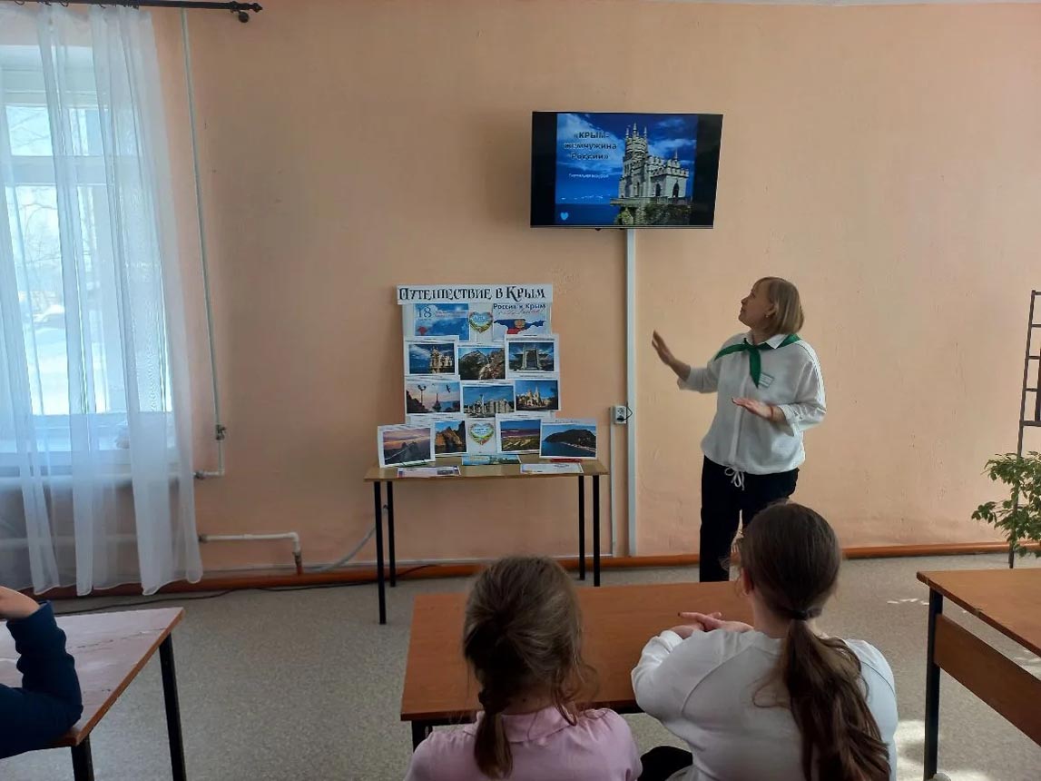 Сотрудники Городской библиотеки №4 подготовили для учащихся 5-го класса СОШ №4 уникальную познавательную программу под названием «Крым — жемчужина России».