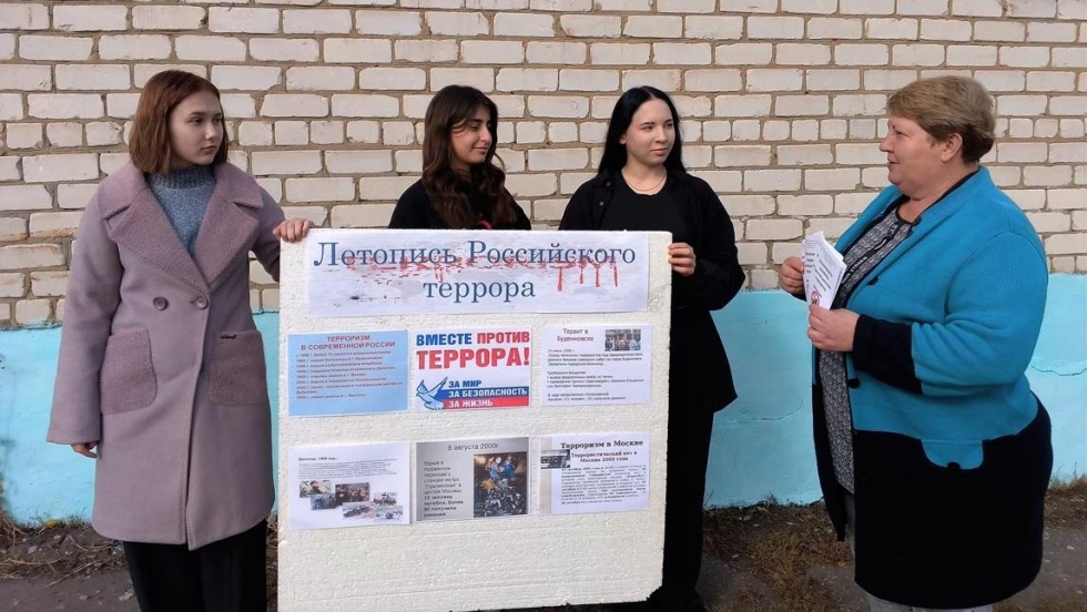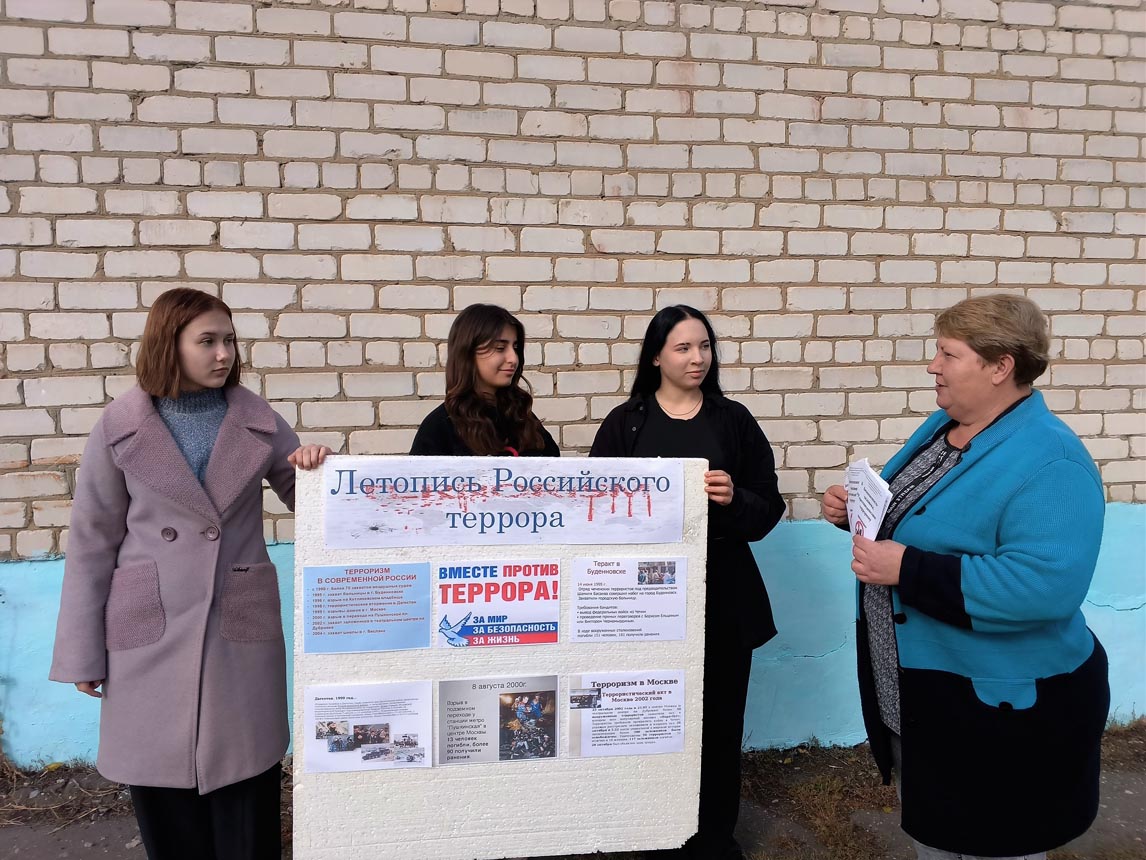 Для наглядного примера сотрудники библиотеки оформили стенд «Летопись российского террора», на котором представлены фото хроника некоторых терактов на территории Российской Федерации.
