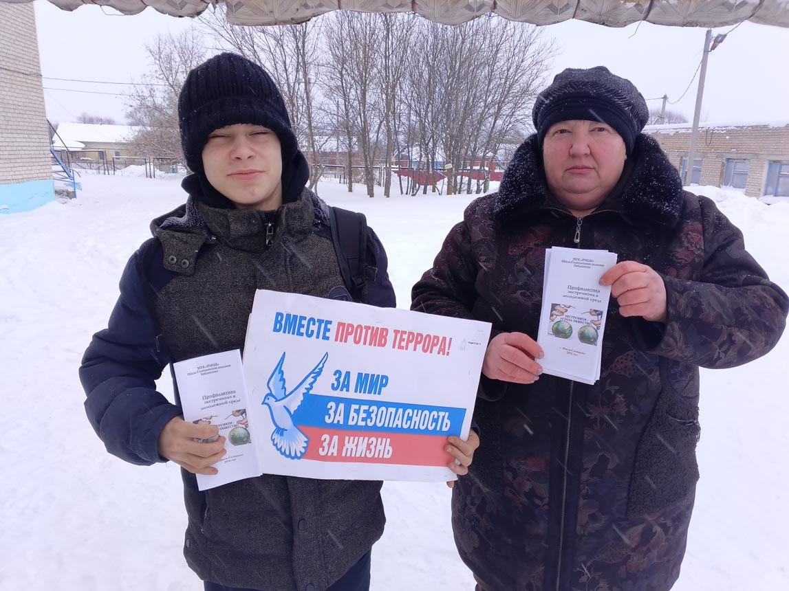В рамках профилактической акции «Единый день профилактики безнадзорности и правонарушений несовершеннолетних» по теме «Профилактика экстремизма и терроризма в подростковой среде» Шило-Голицынская сельская библиотека МУК «РМЦБ» провела акцию-предупреждение «Мы против терроризма и экстремизма» с подростками МОУ Шило-Голицынская СОШ».