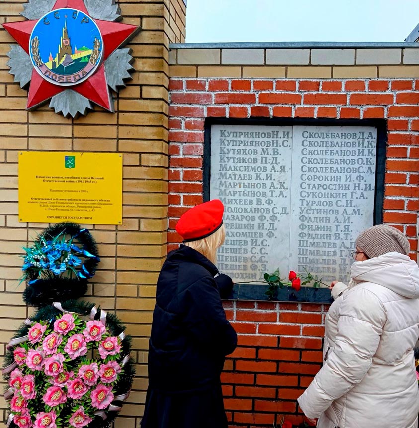 Присутствующие почтили память всех павших минутой молчания, склонив головы перед их подвигом. Цветы, возложенные к Стелле погибшим во время Великой Отечественной войны, стали выражением нашей глубокой благодарности и скорби. Особую торжественность мероприятию придали юнармейцы МОУ «Шило-Голицынская СОШ Ртищевского района», которые несли Вахту Памяти. Их юные, но решительные лица, стоящие у Стеллы, – это живое напоминание о том, что эстафета памяти передается из поколения в поколение.