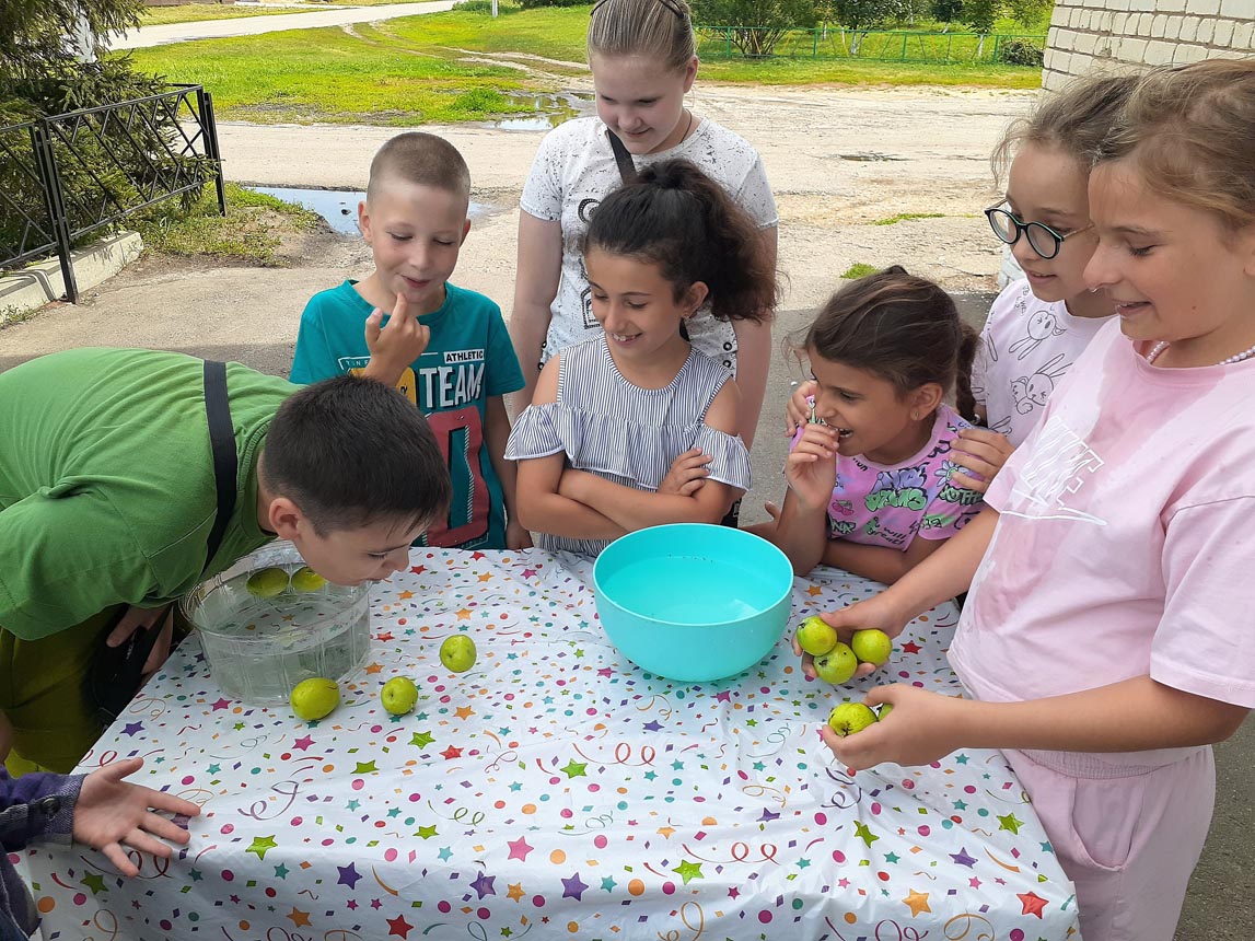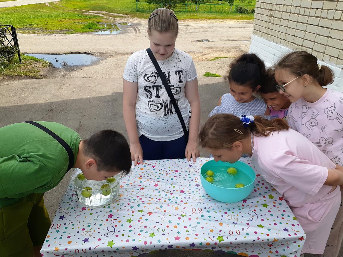 Затем дети с удовольствием и азартом участвовали в конкурсах: «Водоносы», «Поймай яблочко», «Перенеси воду», игре «Ручеёк», «Доскажи словечко», «Ходят капельки по кругу». Во время игр участники проявили свои способности и слаженно выполняли задания в команде. В игре победила дружба.