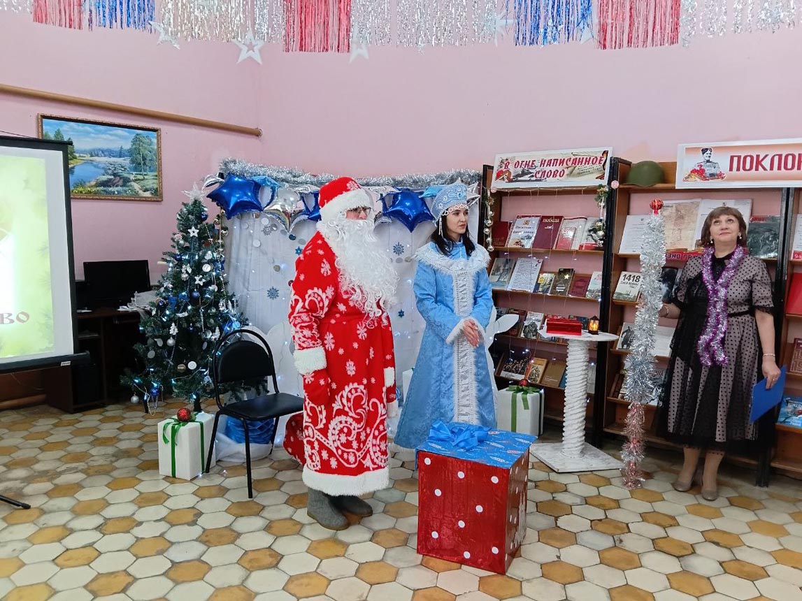 С теплых слов поздравления с наступающим Новым годом и добрых пожеланий началось мероприятие. В зале царила волшебная зимняя атмосфера. Много веселых, забавных и смешных конкурсов приготовили библиотекари для праздничного мероприятия. Открыл программу шуточный новогодний конкурс «Давайте познакомимся!». Далее по традиции позвали главных героев праздника: Снегурочку и Деда Мороза.