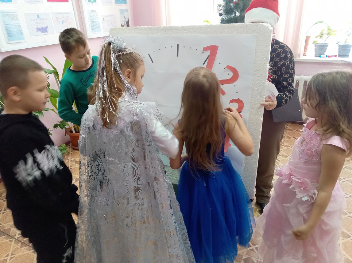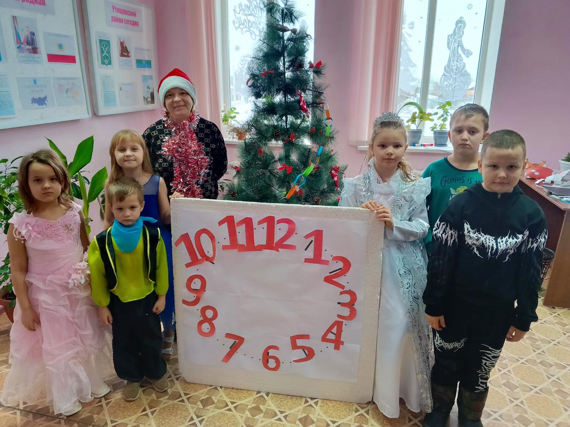Ребят в веселый хоровод пригласила ведущая, вместе с которой дети отправились искать потерявшиеся цифры на новогодних курантах.