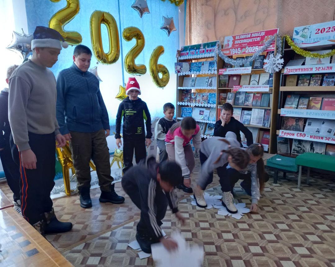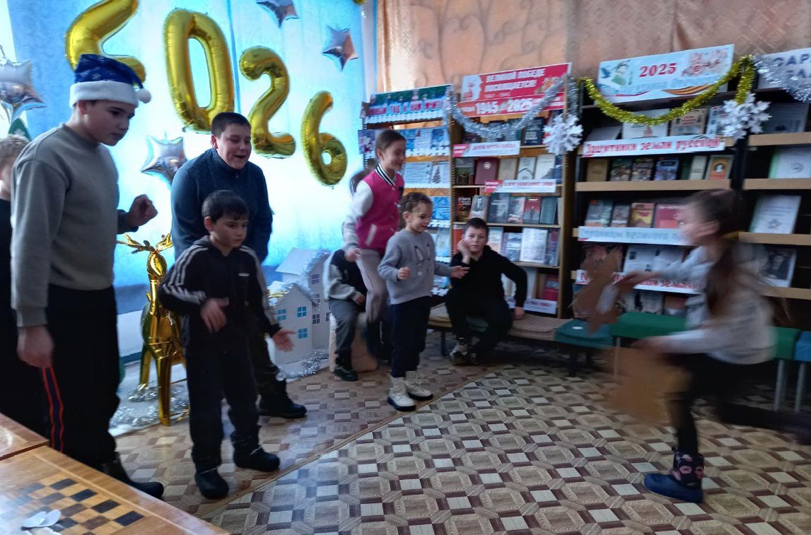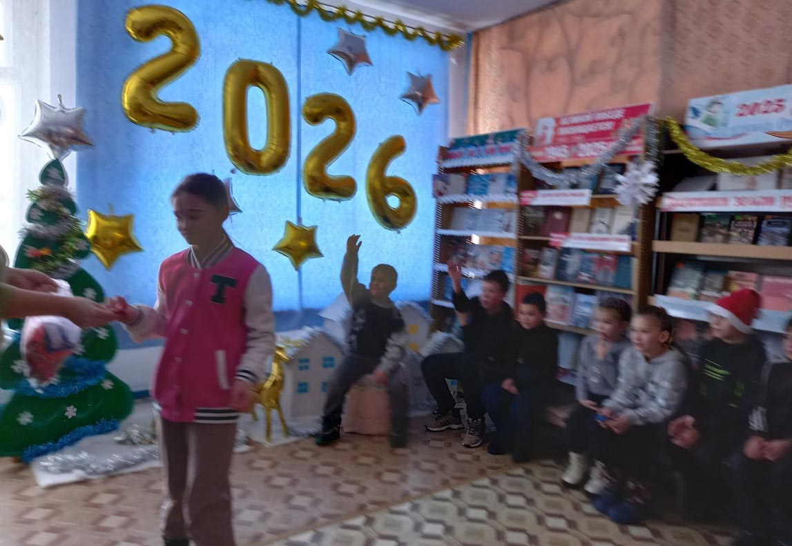 В преддверии Нового 2026 года сотрудники Ртищевской сельской библиотеки провели игровую программу «Новогодний переполох»