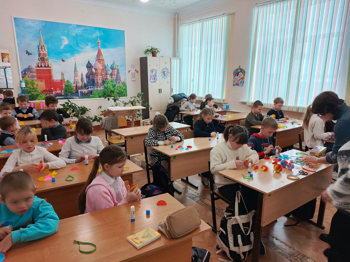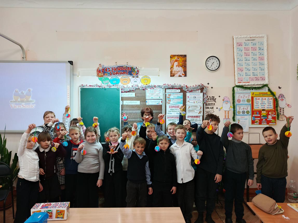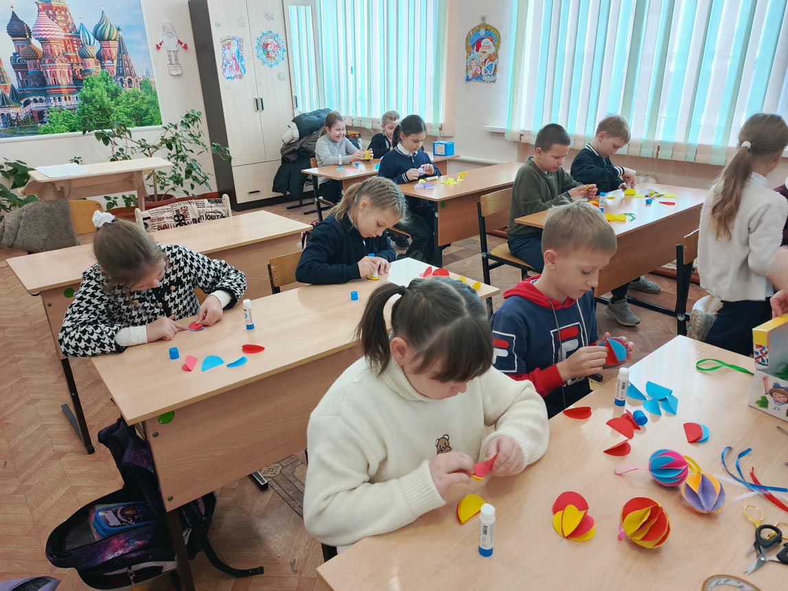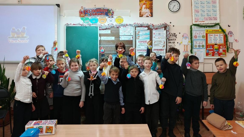 Создание игрушки – это увлекательный процесс, в результате которого, ребята прояви свою творческую способность. С помощью цветной бумаги, клея и ленточек создали ёлочные шары. Во время мастер-класса ребята узнали о традициях новогодних праздников.