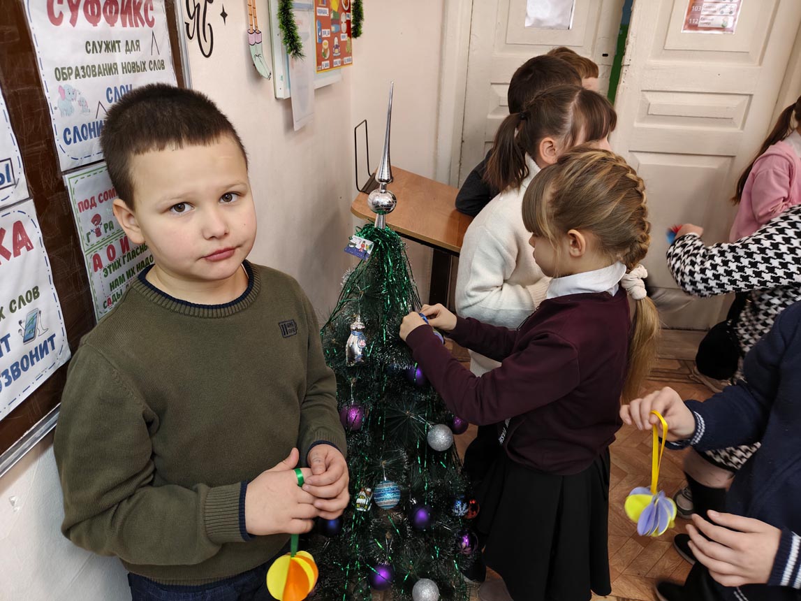 Некоторые новогодние игрушки ребята повесили на ёлочку, остальные взяли с собой, чтобы украсить ими свои новогодние ели.