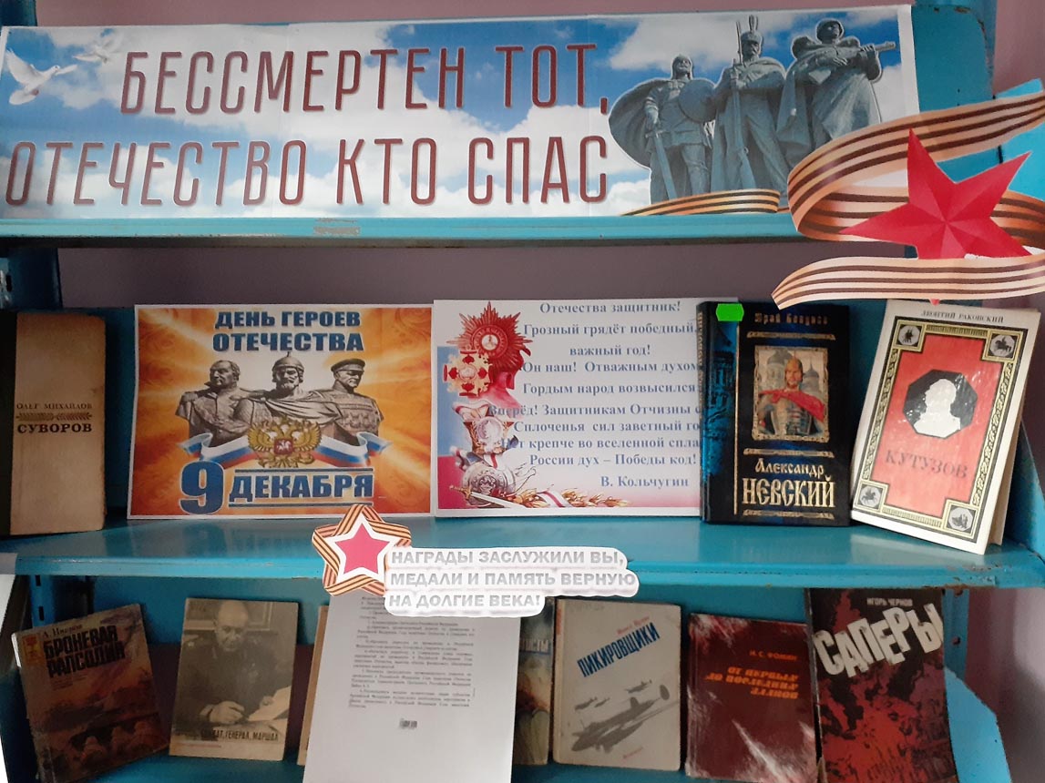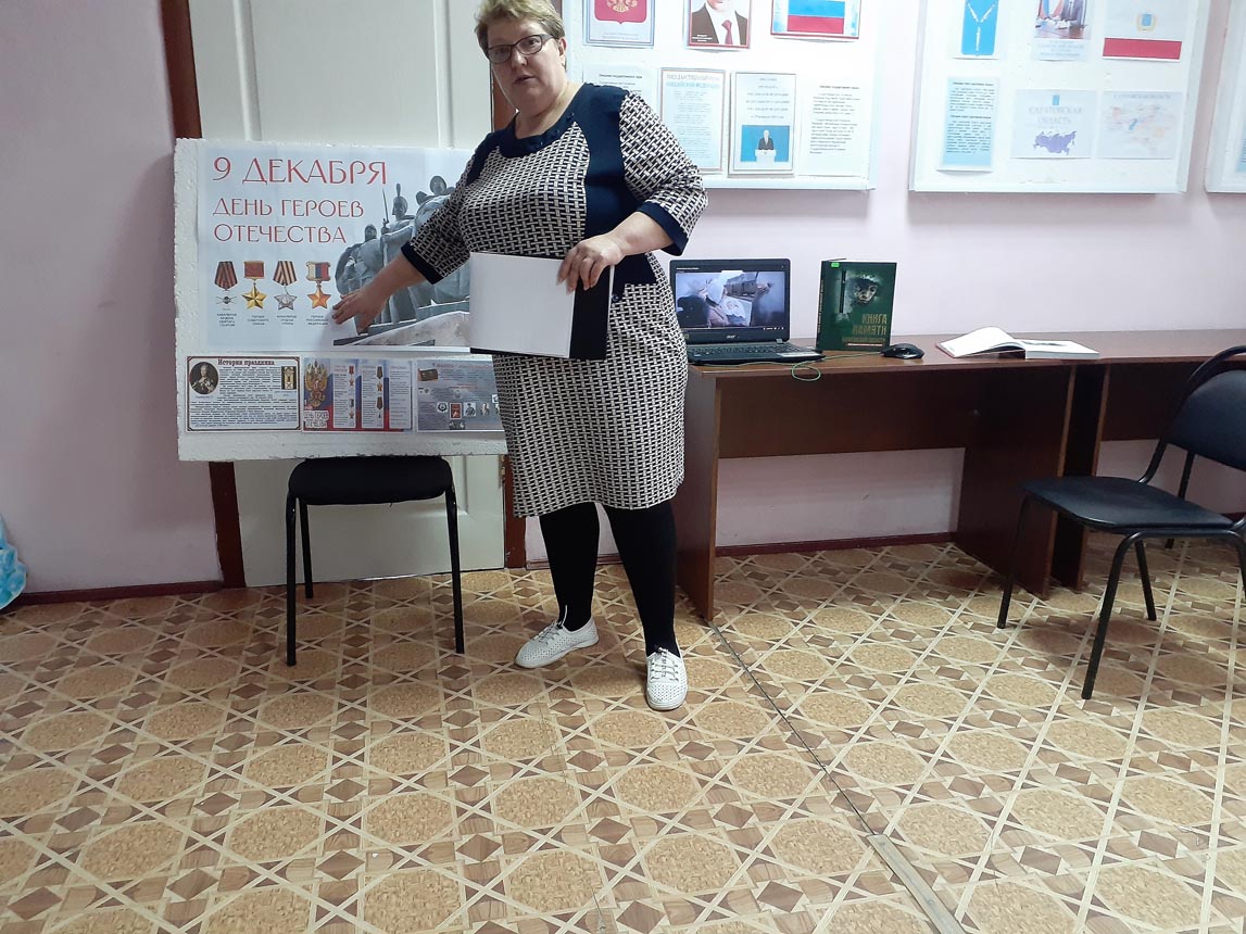 9 декабря в России отмечается памятная дата – День Героев Отечества. Этот день посвящен всем тем людям, которые заслуженно зовутся Героями, чья сила духа, честь, доблесть стали примером проявления наивысших нравственных человеческих качеств и ответственности перед Отечеством. Эта памятная дата была утверждена Федеральным законом от 28 февраля 2007 года «О внесении изменений в Федеральный закон «О днях воинской славы и памятных датах России». В преддверии дня Героев Отечества в Шило-Голицынской сельской библиотеке МУК «РМЦБ» прошел час памяти «Отечества достойные сыны» для активных пользователей библиотеки.