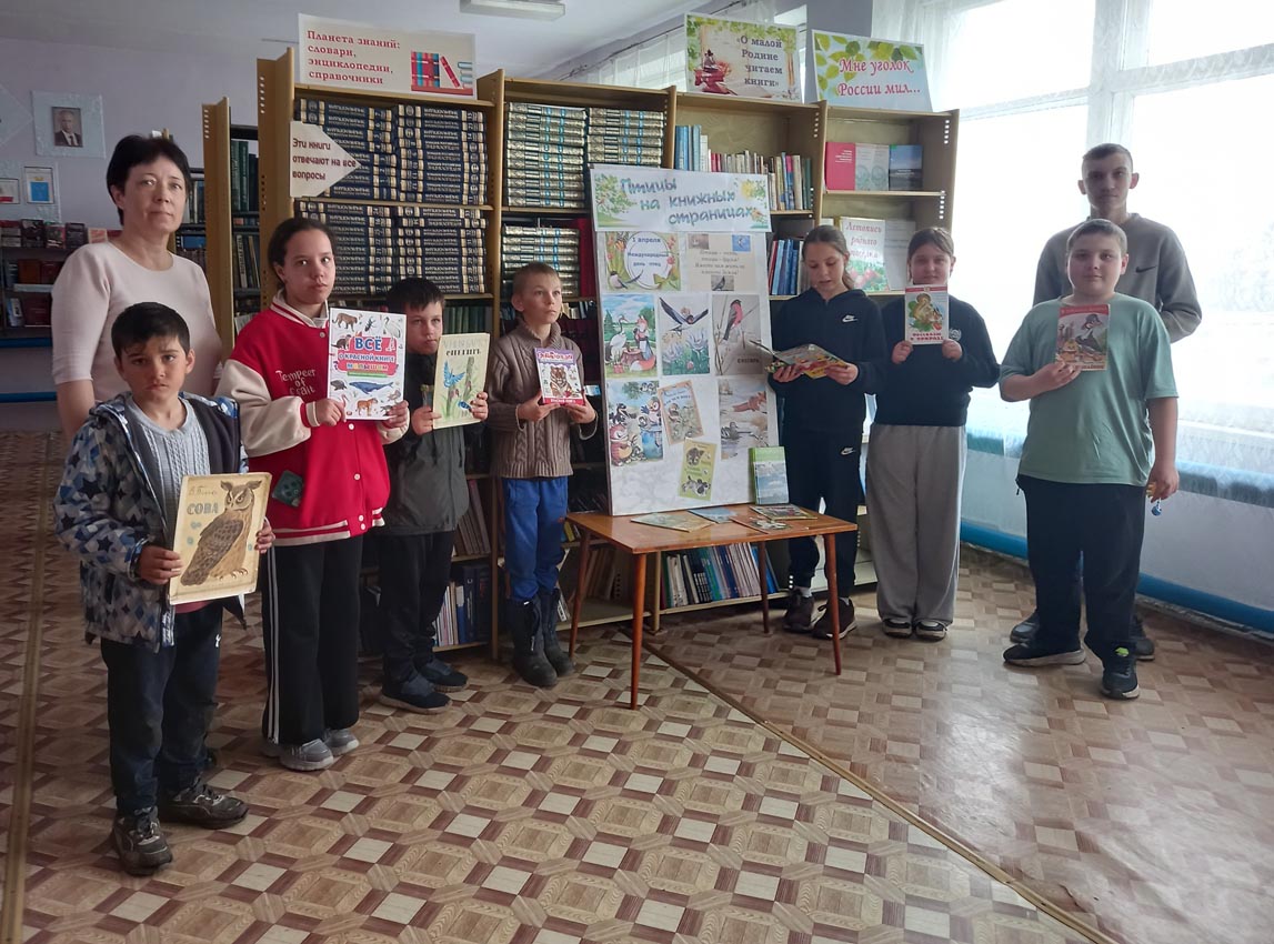 К Международному дню птиц в библиотеке была оформлена книжно-иллюстративная выставка «Птицы на книжных страницах». На полках были представлены красочные энциклопедии, художественные произведения и сказки о пернатых с яркими иллюстрациями. Каждый желающий мог полистать книги, рассмотреть рисунки и выбрать что-нибудь интересное для домашнего чтения.