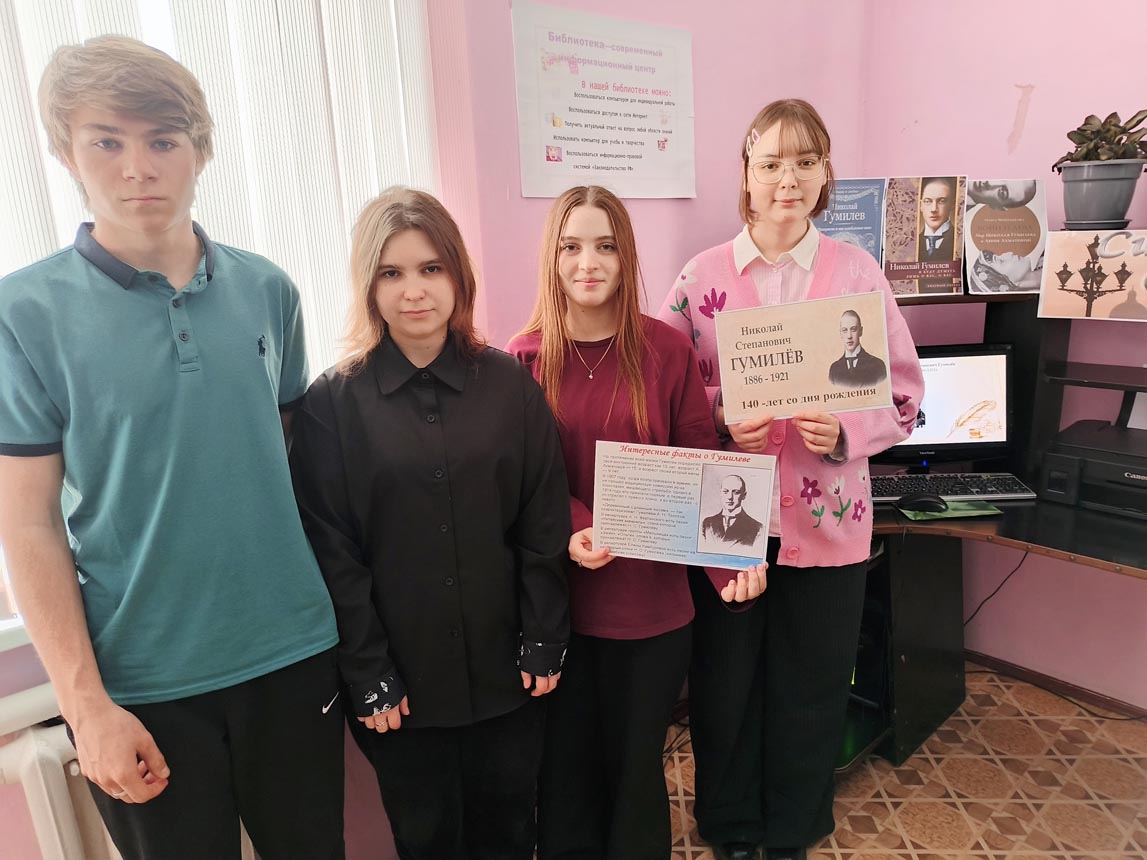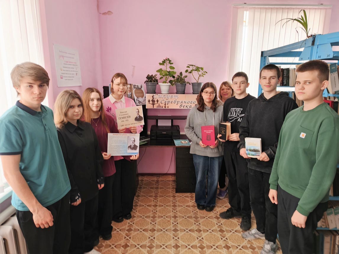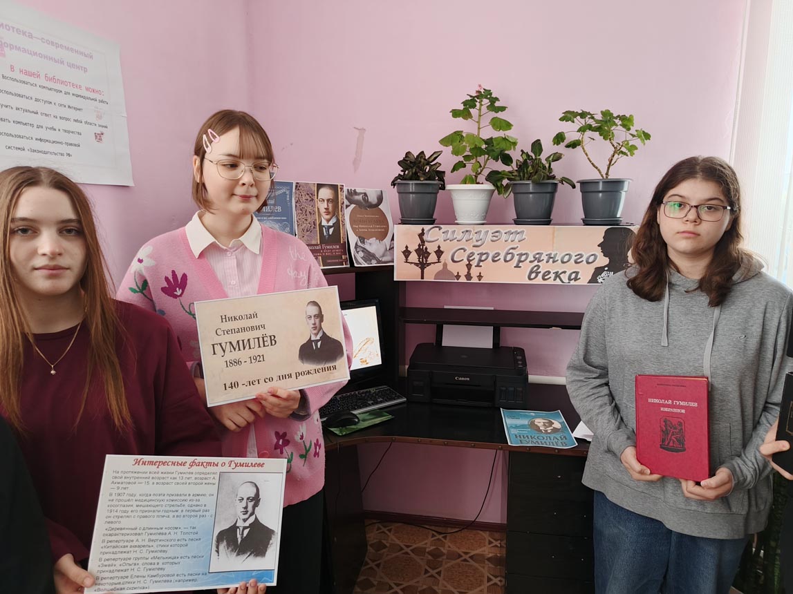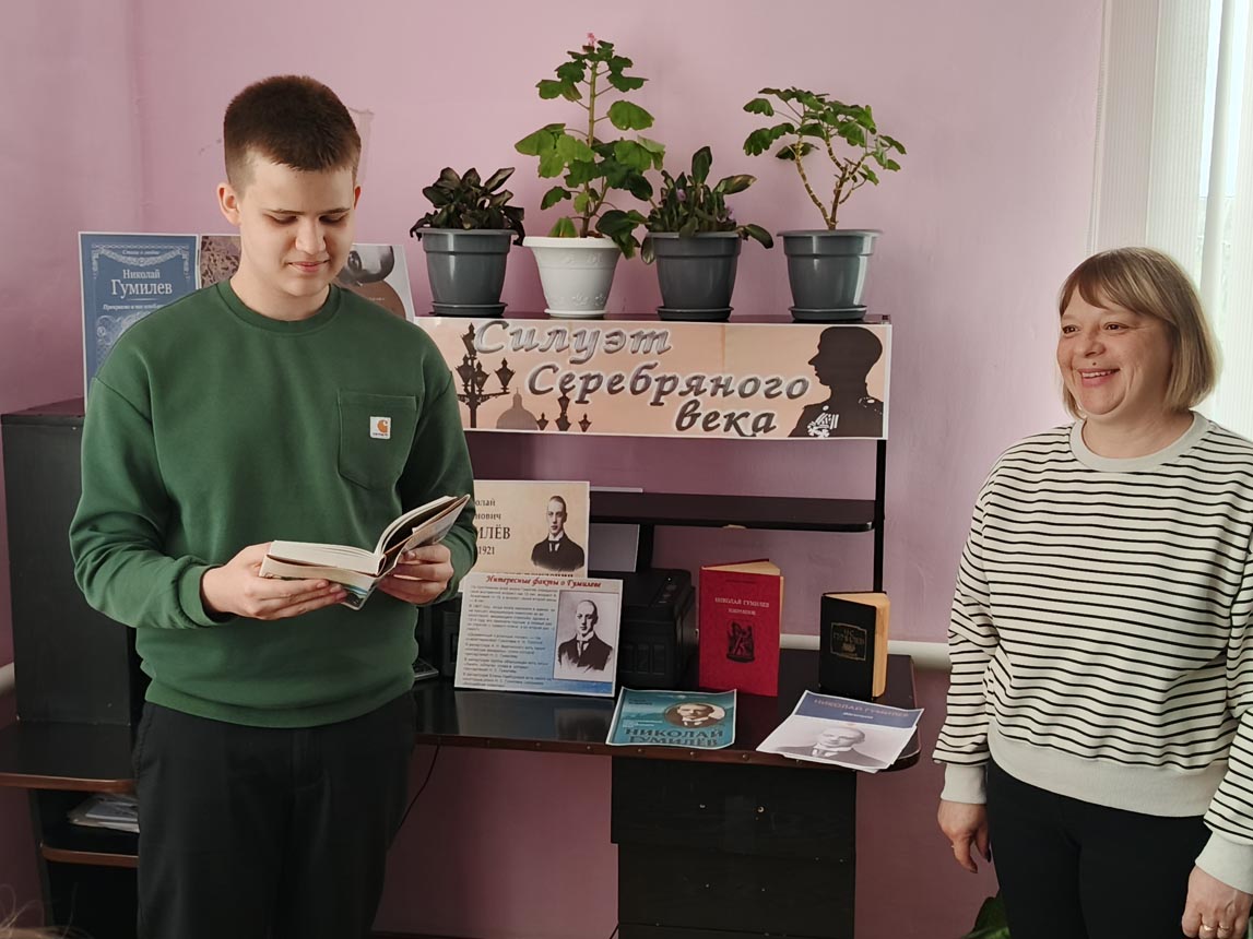 15 апреля в Шило-Голицынской сельской библиотеке МУК «РМЦБ» для старшеклассников Шило-Голицынской СОШ прошла литературная гостиная «Поэт, путешественник, конквистадор», посвящённая 140-летию со дня рождения Николая Степановича Гумилёва.