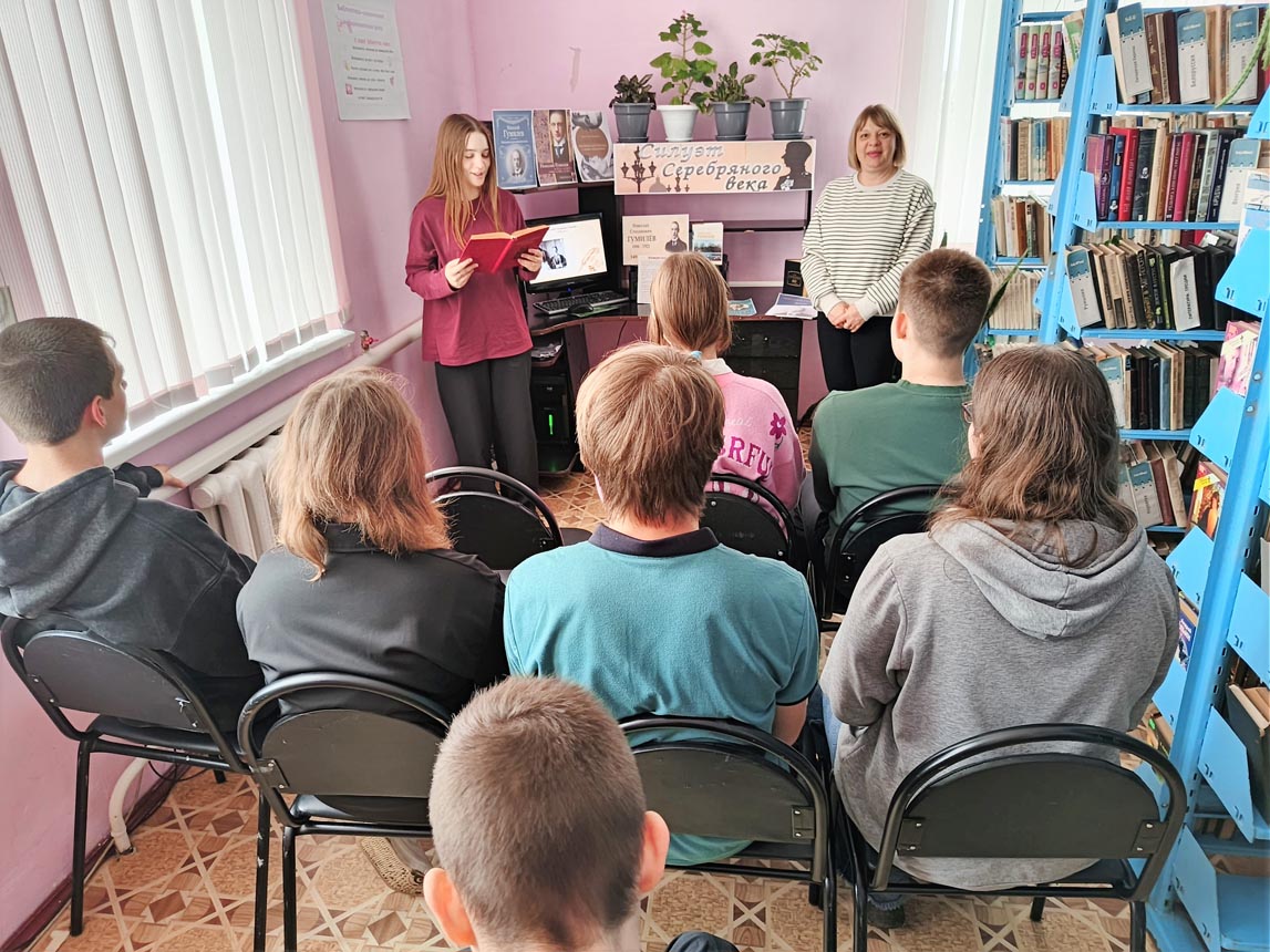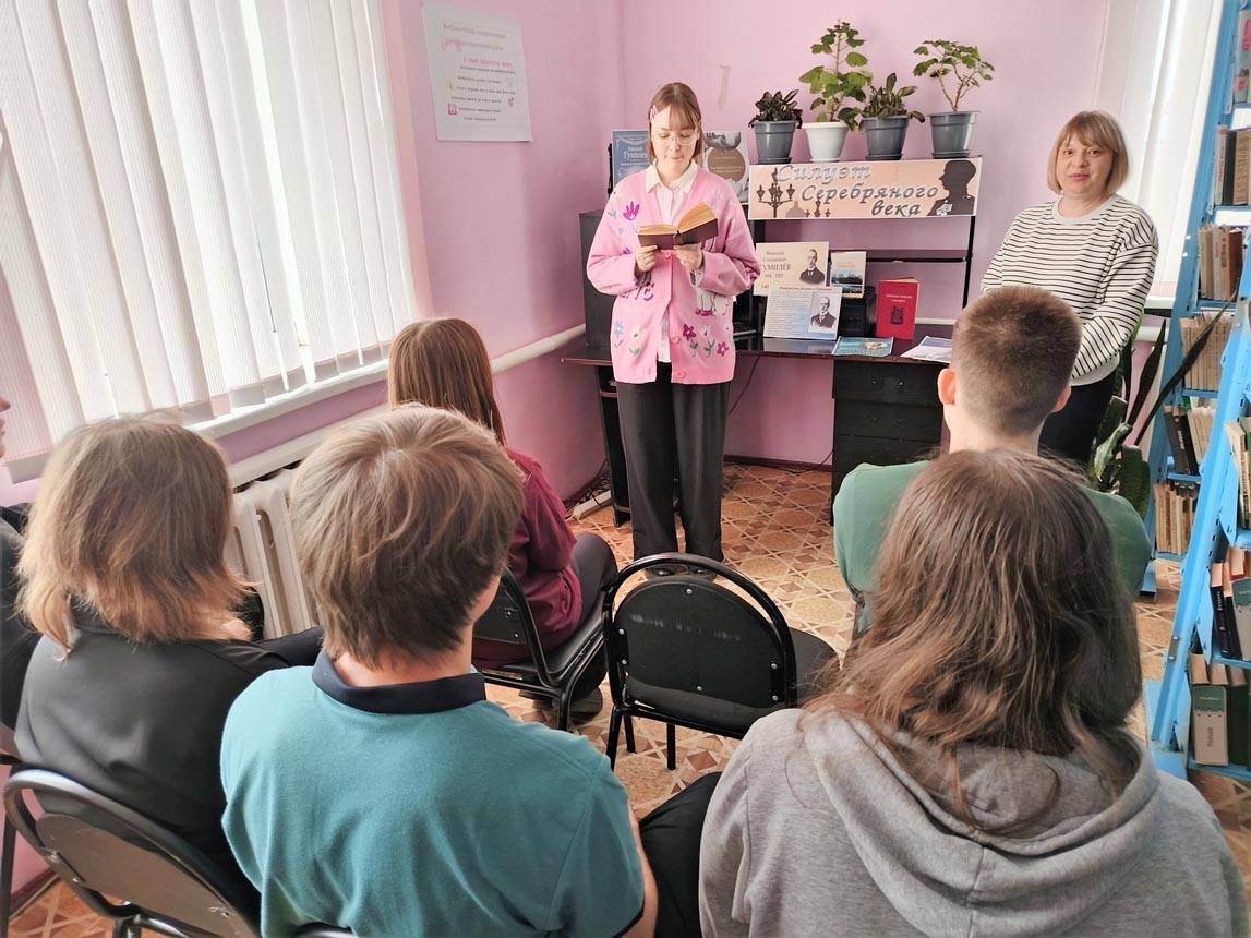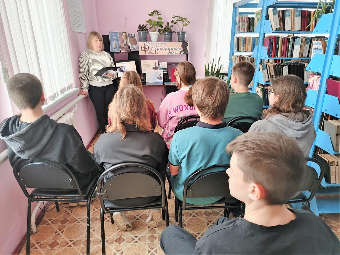 К мероприятию была подготовлена книжная выставка «Силуэт Серебряного века». Атмосфера гостиной позволила ребятам не только узнать новое о судьбе и творчестве поэта, но и почувствовать дыхание целой эпохи, наполненной поиском, страстью и красотой.