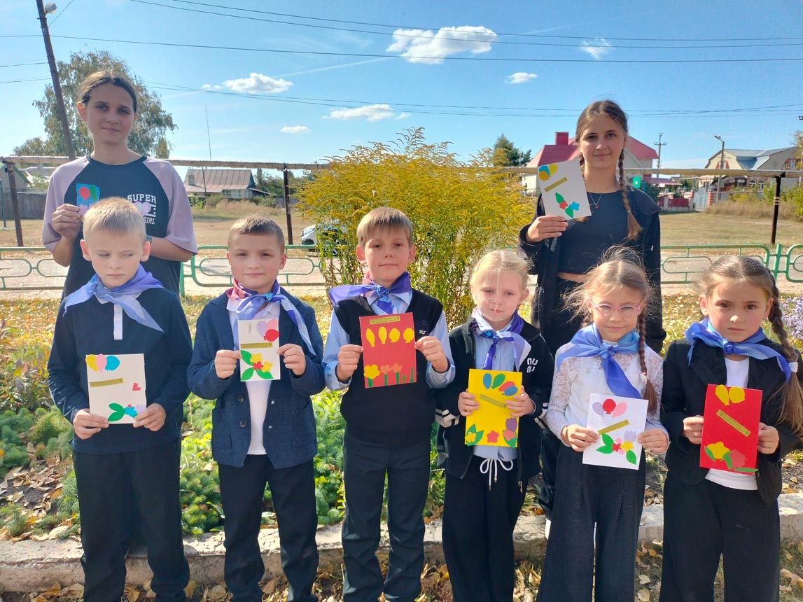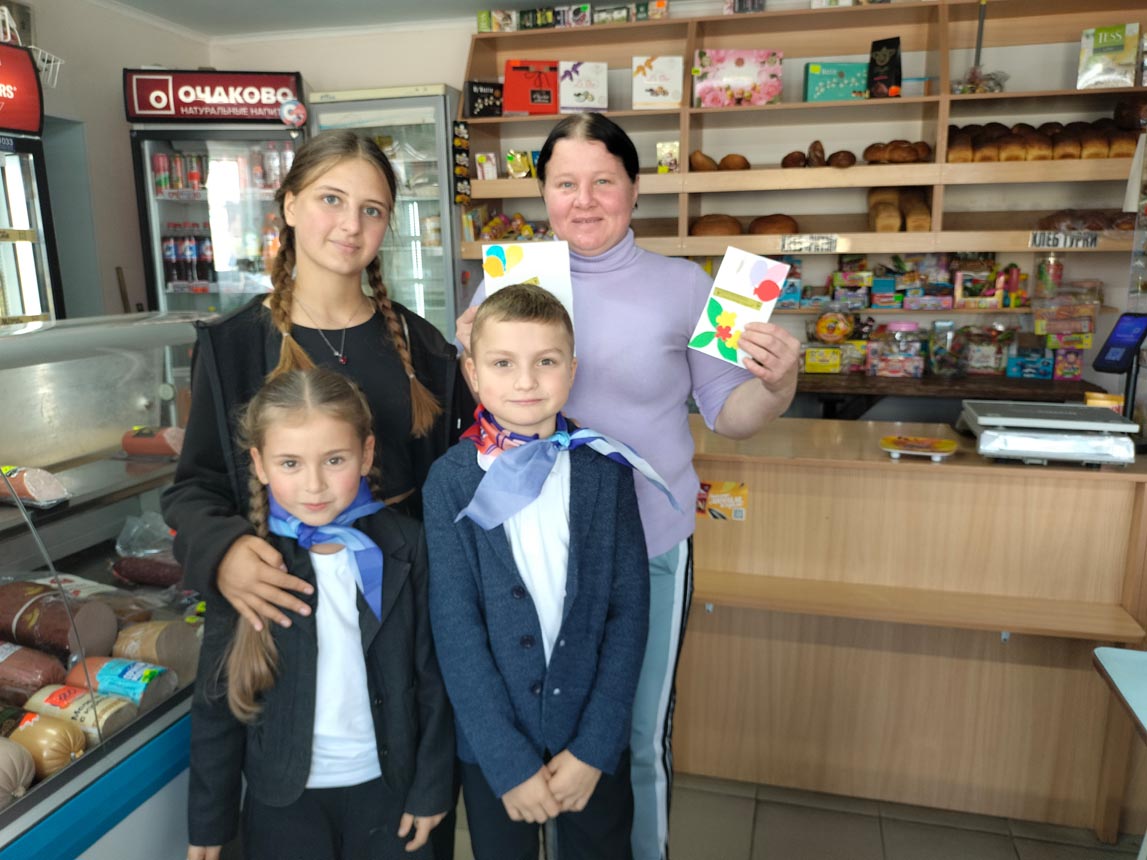 Библиотекарь Выдвиженской сельской библиотеки с юными читателями провели поздравительную акцию «Поздравительная открытка жителям родного города»