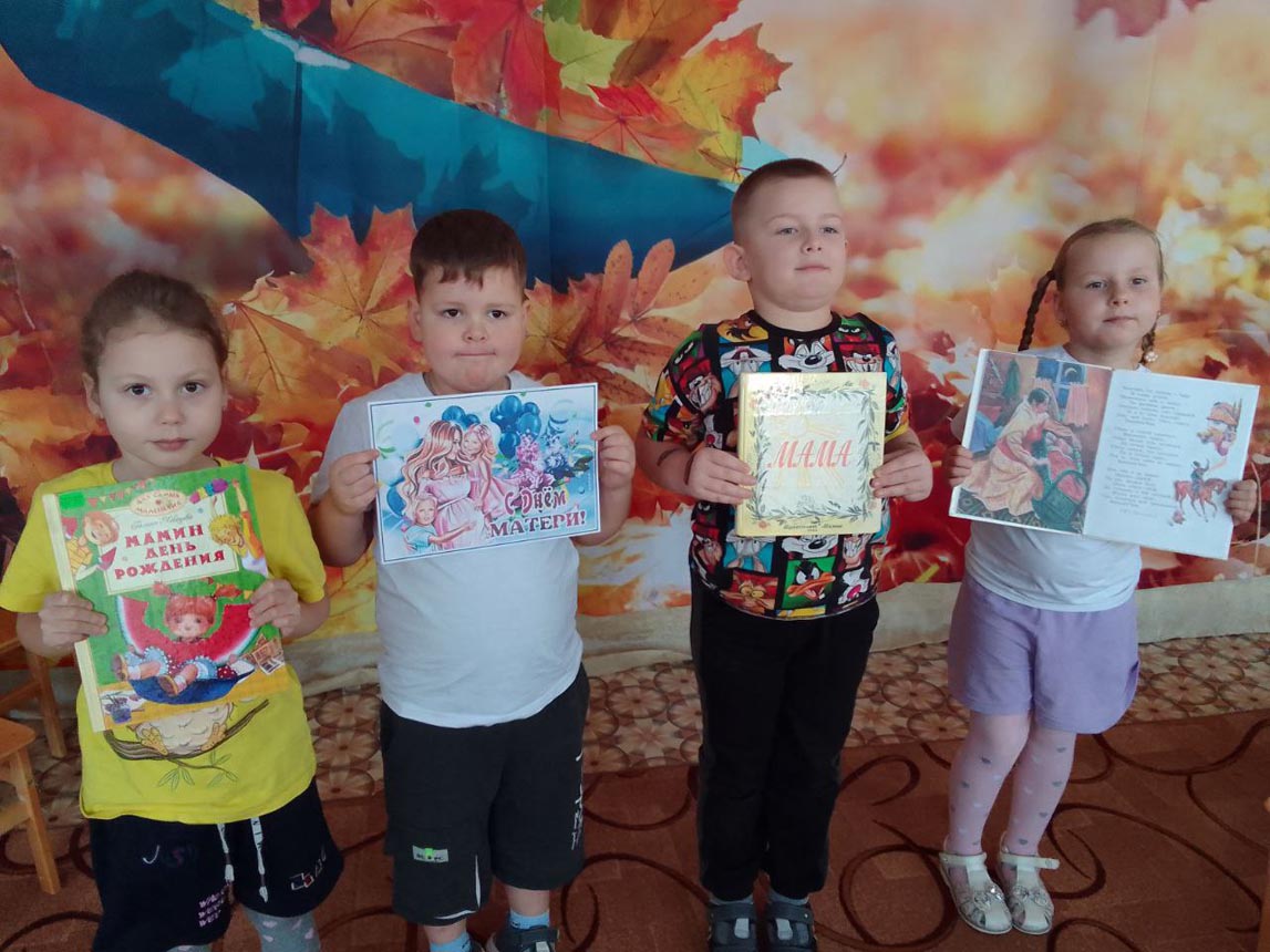Дети познакомились кратко с историей праздника, составляли «букет» добрых пожеланий для мамы. Рассказы В.Осеевой «Печенье» и В. Сухомлинского «Самые ласковые руки», помогли детям увидеть и различить хорошие и плохие поступки героев. Ребята помогли маме «сготовить» борщ, приняли участие в викторине «Мама – рукодельница». С интересом рассматривалась выставка, на которой были представлены добрые и интересные книги, где ярко выражен образ Матери.