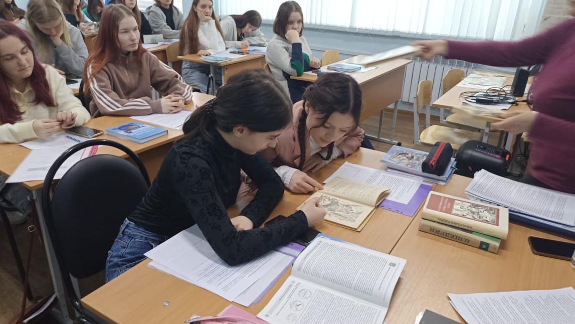 Библиотекарь познакомила студентов с жизнью писателя, с годами обучения и работой на государственной службе. Прочитали отрывки из произведений «История одного города», «Господа Головлёвы». В центре творчества писателя особое место занимают сказки. Язык сказок точен, ярок, образен, что позволяет понятно и ёмко донести до читателя «главные» мысли автора. Темы, поднятые Салтыковым-Щедриным, – это его боль, его переживания за страну, о которых он говорил посредством того дара, которым Господь его наградил – даром слова сатирика.