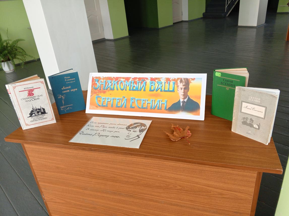 - - Репьевская сельская библиотека МУК «РМЦБ» познакомила жителей села с книжной выставкой «Знакомый ваш Сергей Есенин», рассказала о книгах, приглашающих в путешествие на родину поэта и исследующих его творческий путь, предложила к чтению сборник стихов лирика.