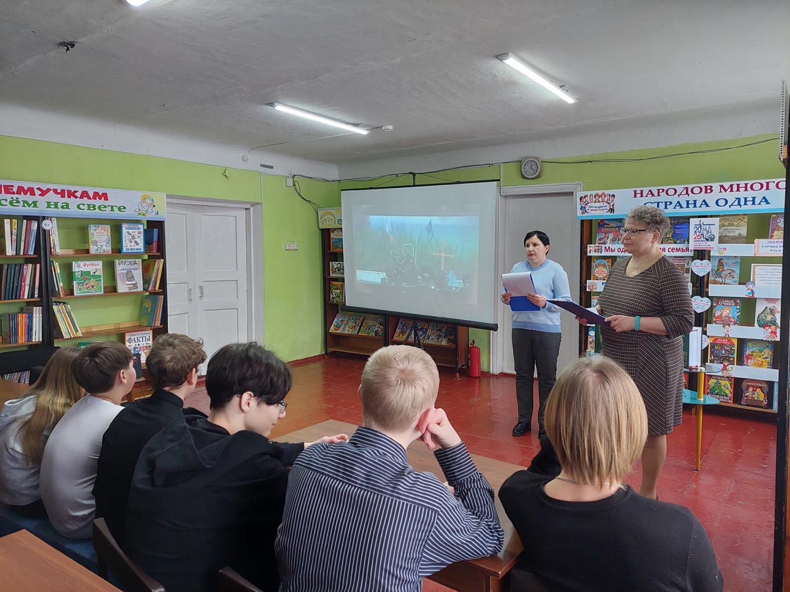 В ходе встречи школьники услышали рассказы о героизме российских военнослужащих, защищающих мир и порядок. Библиотекари поделились историями о местных жителях, участвующих в защите Донбасса, а также почтили память погибших героев.