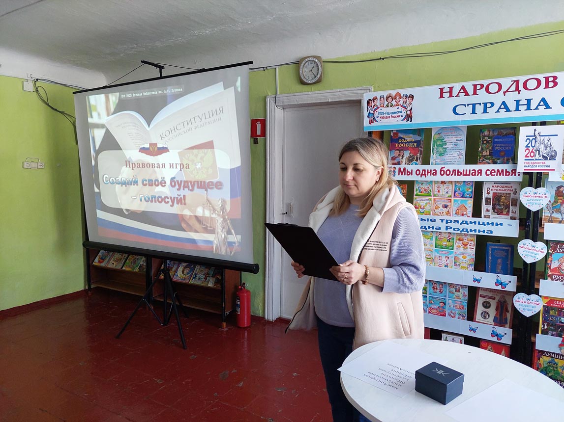 В рамках месячника молодого избирателя в Детской библиотеке имени А.С. Пушкина Муниципального учреждения культуры «Районный методический центр библиотек» состоялась увлекательная правовая игра «Создай свое будущее – голосуй», посвящённая основам избирательного процесса и правам граждан Российской Федерации. В мероприятии приняли активное участие ученики Лицея №3 имени П.А. Столыпина, представляющего собой Государственное автономное образовательное учреждение.