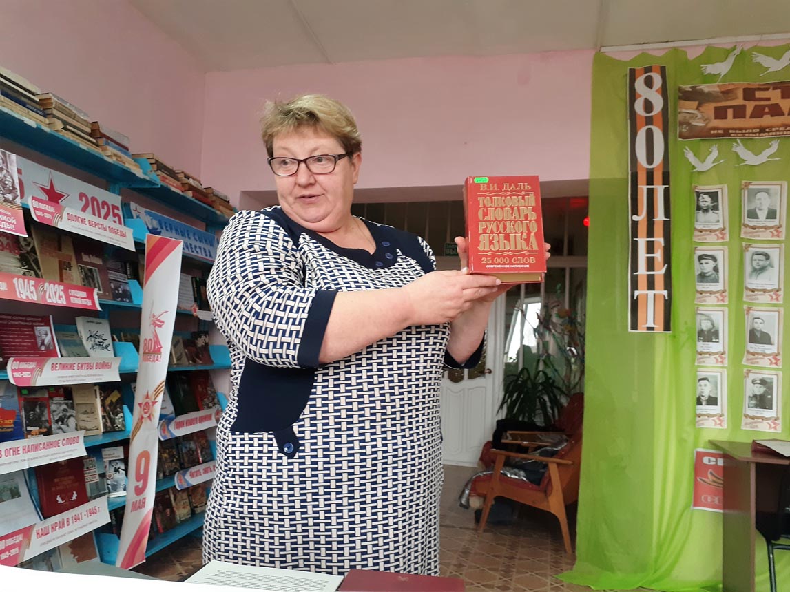 Заведующая библиотекой Кашкина Т.А. познакомила ребят с историей праздника и известными деятелями, посвятившими свою жизнь изучению и толкованию слов русского языка, с огромным многообразием справочной литературы.
