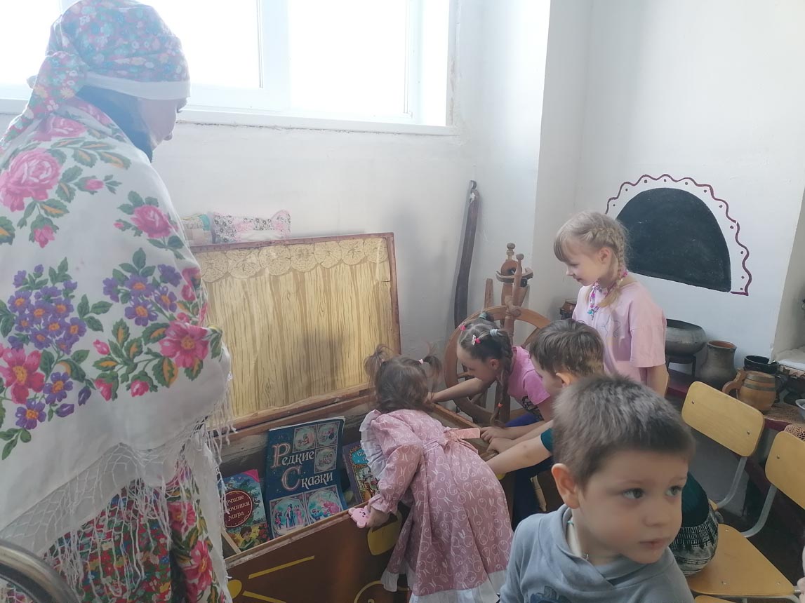 Путешествуя вместе со Сказочницей по Волшебной стране, юные гости мероприятия натолкнулись на таинственный сундук, наполненный сокровищами русской народной мудрости. Внутри были спрятаны старые добрые сказки, окружённые загадочными предметами и яркими иллюстрациями. Ребят ждали захватывающие задания и интересные головоломки, призванные проверить знания традиционных русских сказок. Успешно справившись с заданиями, маленькие слушатели смогли назвать любимые истории: «Курочку Рябу», «Репку», «Колобка», «Рукавичку». Таким образом, своим участием и стараниями дети подтвердили глубокое знакомство с традиционными сюжетами русского фольклора.