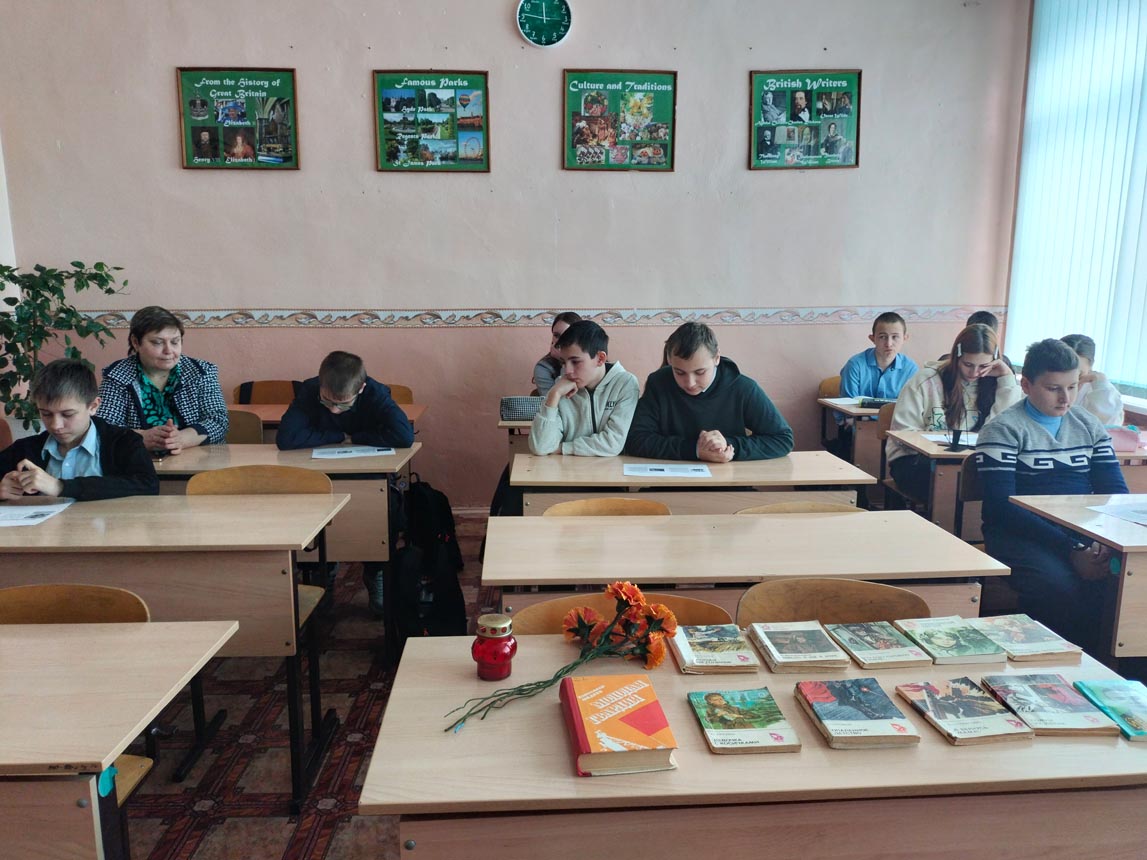 Библиотекарь Выдвиженской сельской библиотеки МУК «РМЦБ» организовала час мужества и акцию памяти «В маленьком сердце священный огонь» для учеников 7-го класса МОУ «СОШ №1 г.Ртищево Саратовской области». Цель мероприятия заключалась в воспитании уважения к историческим традициям и героическому прошлому нашей страны среди молодого поколения.
