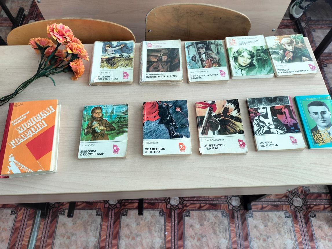 Также библиотекарем проведен литературный обзор книг, повествующих о героизме молодых бойцов в годы войны. Школьники ознакомились с художественными произведениями, показывающими мужество и стойкость юных героев, внесших значительный вклад в борьбу с фашизмом.